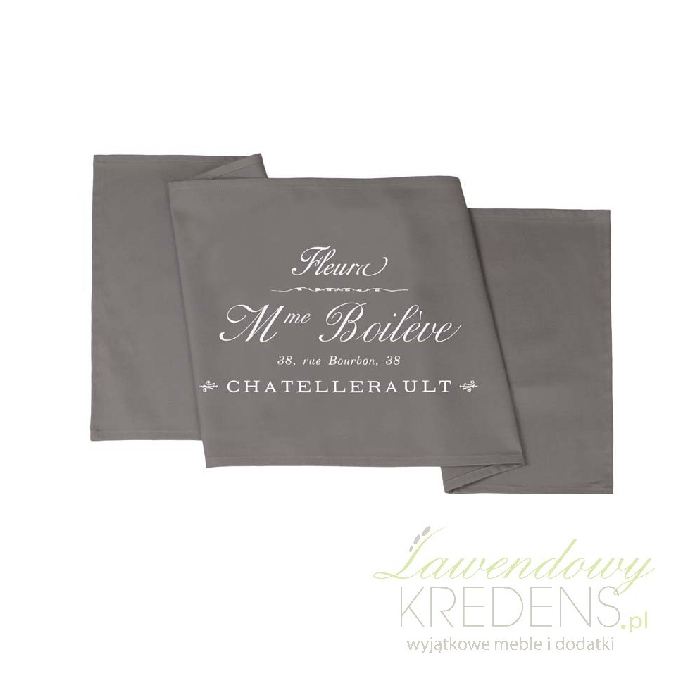 Praktyczne bieżniki na stół marki French Home w kolorze szarym. Dzięki zastosowaniu takiego koloru, bieżnik na stół dopasuje się do każdego wnętrza i każdej zastawy stołowej, nadając zwykłemu posiłkowi klasy i elegancji. Delikatny nadruk sprawia, iż bieżnik wpisuje się do dodatków w stylu francuskim.