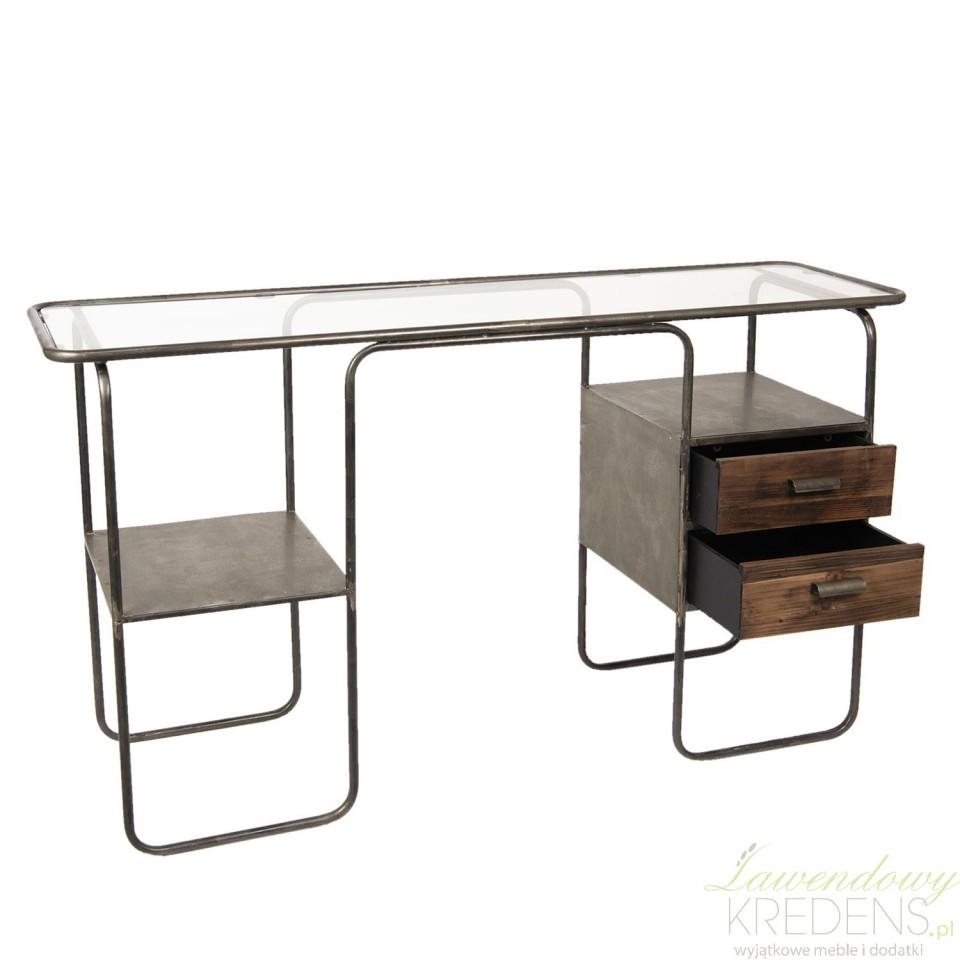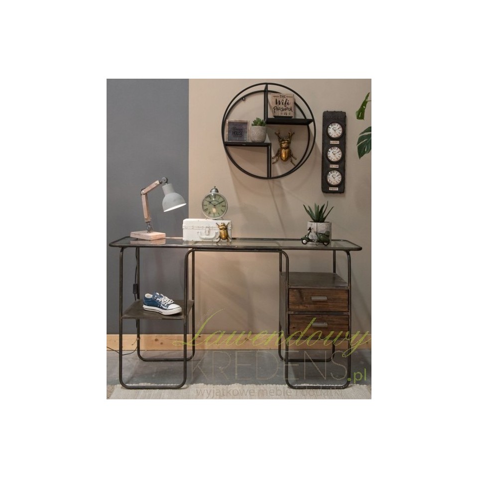 Stwórz przestronne i zachęcające środowisko pracy wybierając biurko w stylu industrialnym firmy Clayre & Eef. Wykonane ze szkła, metalu i drewna w kolorze ciemnobrązowym posiada półki i szufladki, aby zaoszczędzić miejsce, zapewniając jednocześnie dużą powierzchnię do pracy. Szuflady i półki dopełniają wygodę i styl tego pięknego biurka. Meble industrialne takie jak industrialne biurka polecamy do biur gabinetów.