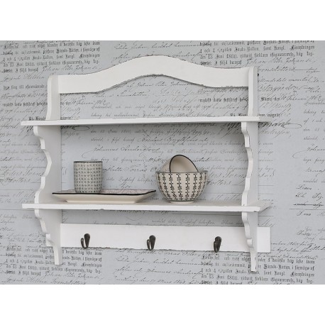 Półka wisząca będzie praktycznym meblem do kuchni, posiadająca dwie półki na której można ustawić na przykład naczynia oraz trzy wieszaki na przykład na ściereczki.