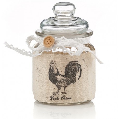 Piękny stolik do Twojego ogrodu w stylu vintage, Czarny, specjalnie postarzany. Czarny blat z jasnymi przetartymi napisami. Szklany pojemnik nada się do kuchni jak i do przechowywania małych przedmiotów czy też cukierków. Z motywem dumnego koguta.