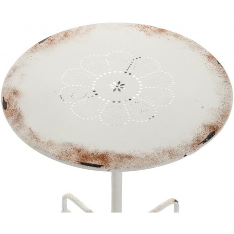 Biały, postarzany z rdzą stolik. Na blacie posiada piękny ażurowy wzór. Wprowadzi cudny klimat do Twojego ogrodu.