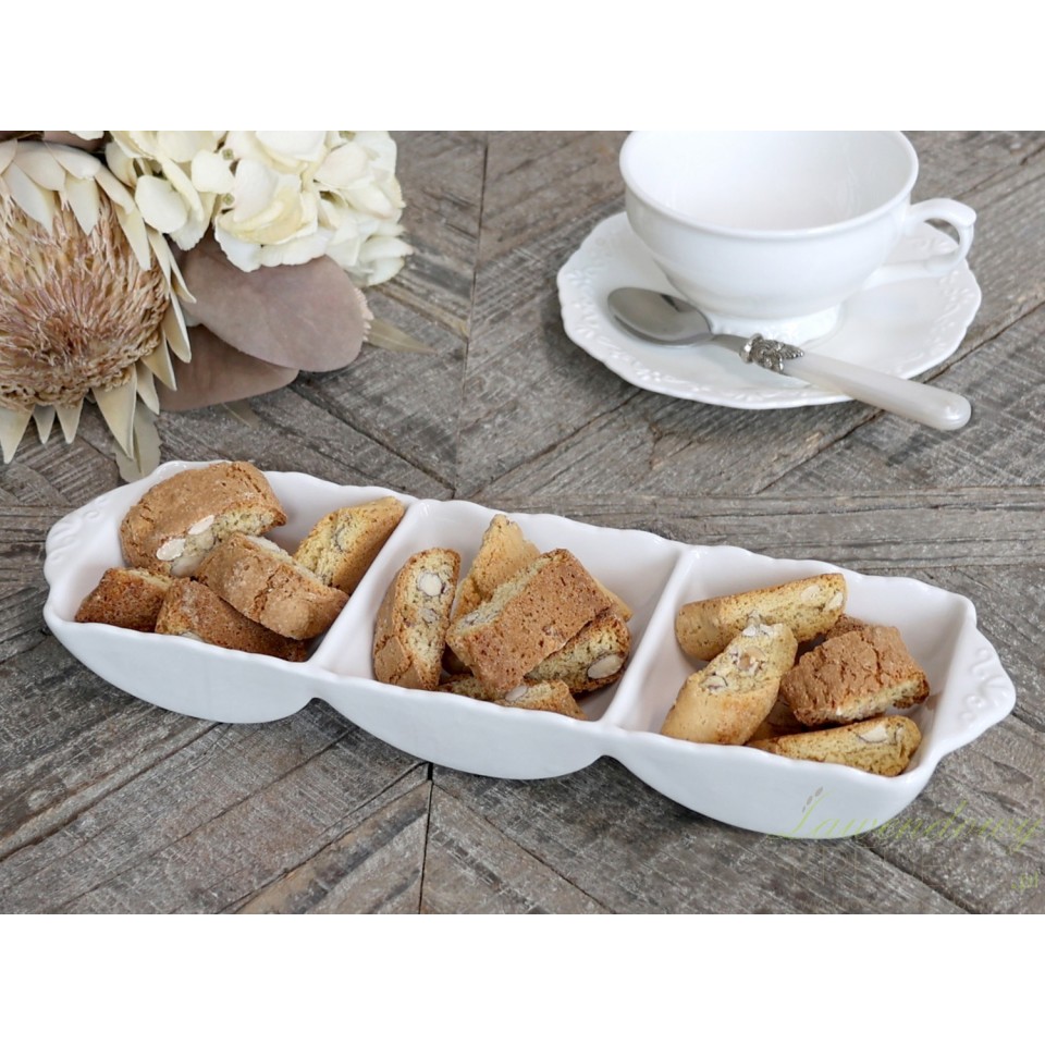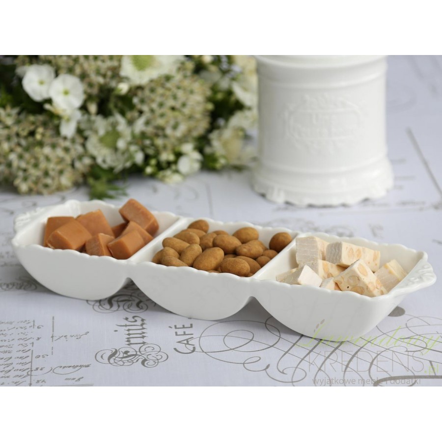 Podłużna miska prowansalska to składająca się z trzech połączonych ze sobą naczyń na słodkie i słone przekąski lub sosy!