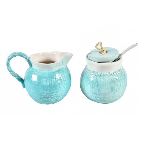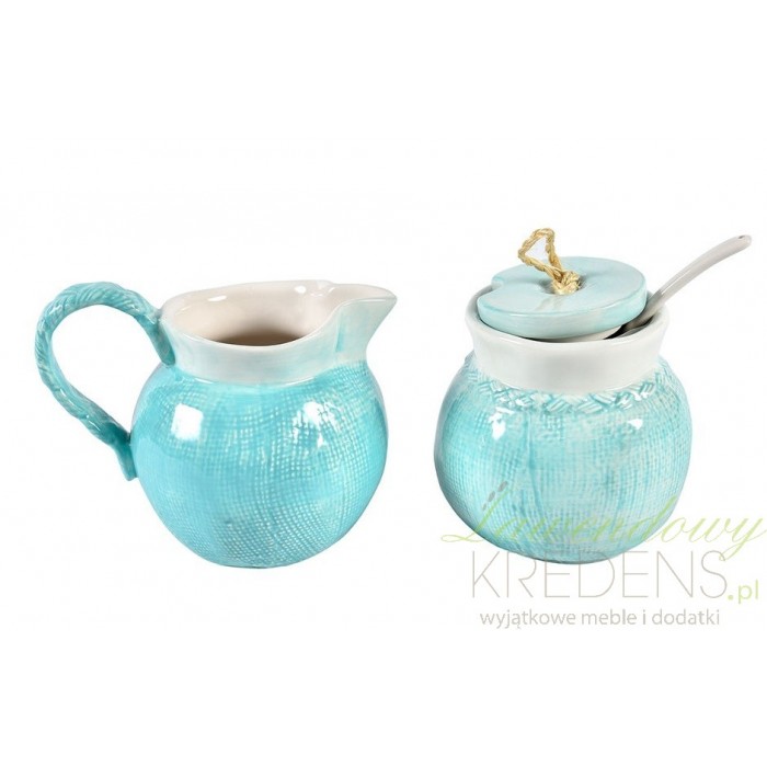 Dwukolorowa ceramika Belldeco Fiore Blu to seria ręcznie malowanych produktów w stylu włoskim. W skład sprzedawanego zestawu wchodzą dwukolorowe mlecznik oraz cukiernica z białą łyżeczką. Cykiernica zamiast tradycyjnego uchwytu na wieczku posiada ciekawy sznureczek. Ceramika Fiore Blu to wyjątkowe przedmioty, które pomogą Ci stworzyć atmosferę niczym z ciepłych, słonecznych Włoszech.