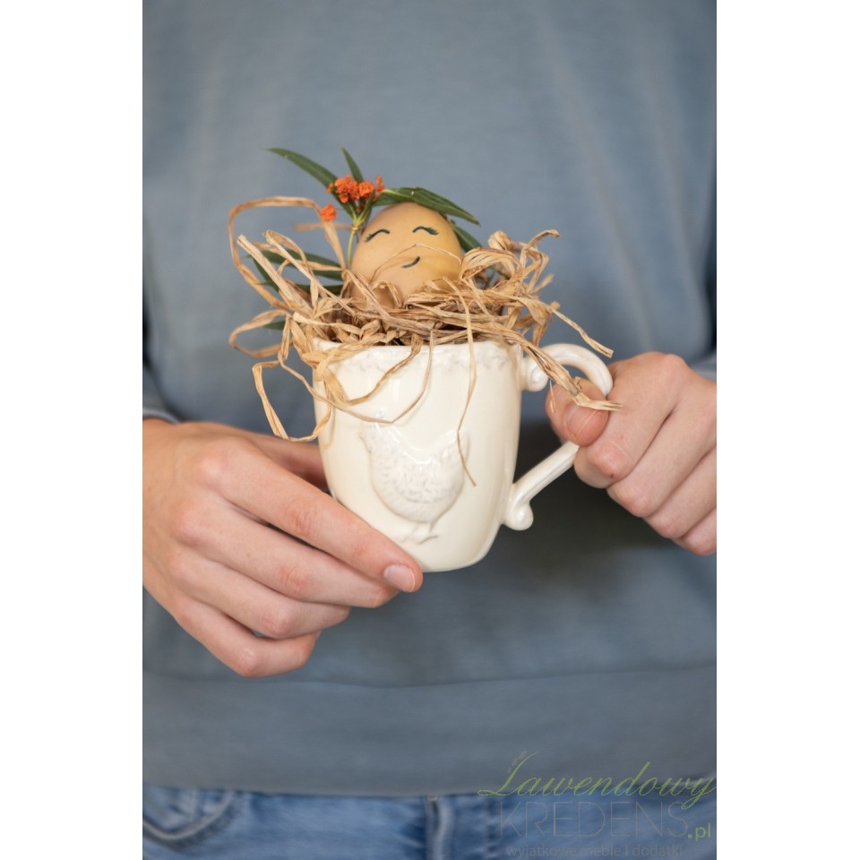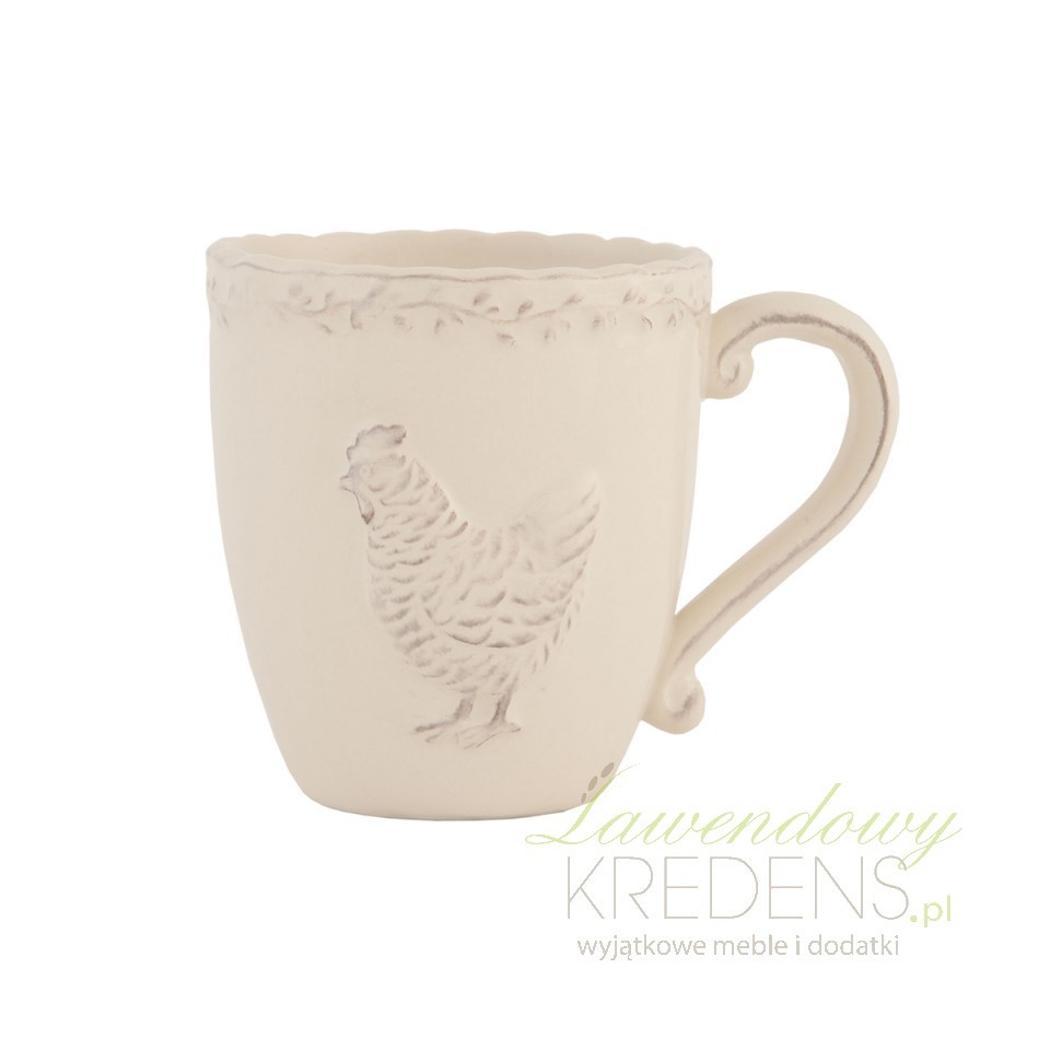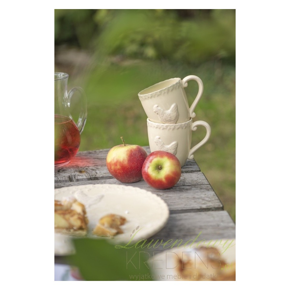 Beżowe kubki prowansalskie idealne na swojski i rodzinny stół. Kubki z wytłaczaną kurą to ceramika prowansalska, której nie znajdziesz nigdzie indziej!