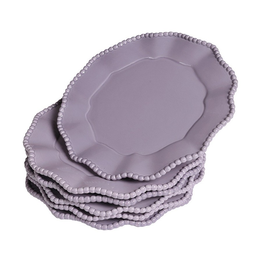 Talerz Belldeco wykonany jest z ceramiki w kolorze fioletowym. Ma nieregularną falistą krawedz, a na niej śliczną dekorację w postaci koralików. Talerze w stylu prowansalskim firmy Belldeco to przepiękna ozdoba rodzinnego stołu, która umili popołudniowy obiad. Warto je zakupić!