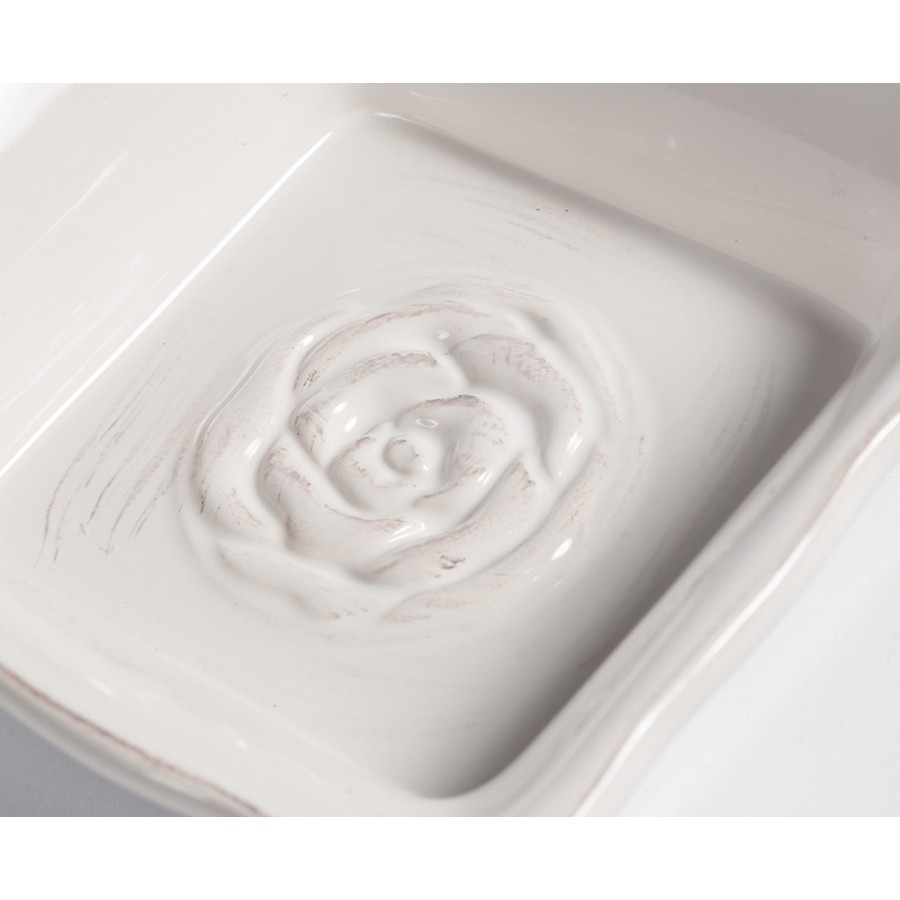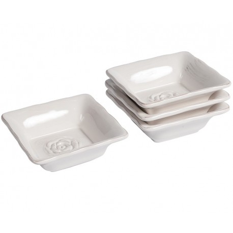 Kwadratowa ceramiczna miseczka Belldeco to przydatny przedmiot z kolecji Sorrento marki Belldeco o delikatnie falistych krawędziach. Biała, lakierowana powłoka jest miejscowo specjalnie ocierana, aby nadać miseczce stylu i charakteru, a znajdująca się na dnie wypukła różyczka jest nieocenionym elementem zdobniczym przedmiotu. Ceramika Belldeco - klasa sama w sobie!