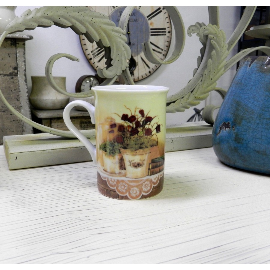 Kubek prosty szachownica, to bez wątpliwości uroczy przedmiot, wykonany z ceramiki, wyposażony w wygodnie leżące w palcach ucho oraz w idealnie wyprofilowany rant kubka. Naczynie udekorowano obrazkiem przedstawiającym doniczki z kwiatami, ustawione na stoliczku przykrytym obrusem. Ceramika prowansalska to cudowne naczynia o pięknej dekoracji - polecamy!