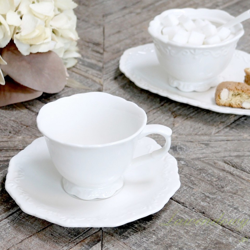 Prześliczne filiżanki w stylu prowansalskim ze spodeczkami marki Chic Antique z pięknie wyprofilowana krawędzią!