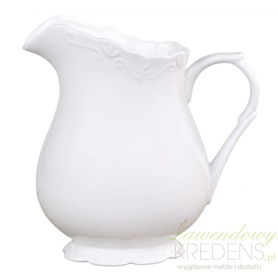 Klasyczny, a jednocześnie urzekający delikatnością i elegancją dzbanek prowansalski marki Chic Antique z subtelnymi zdobieniami w postaci wyjątkowych wypukleń przy dolnej i górnej krawędzi. Opływowy kształt z zapewniającym nierozlewanie ujściem i wygodnym uchwytem to najwyższej jakości porcelana użytkowa!