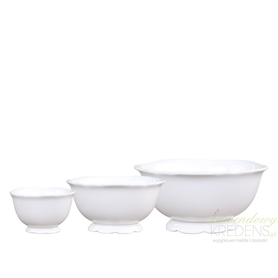 Miski prowansalskie z kolekcji Provence Chic posiadają faliste rzeźbienia zarówno na górnej krawędzi jak i przy podstawie.