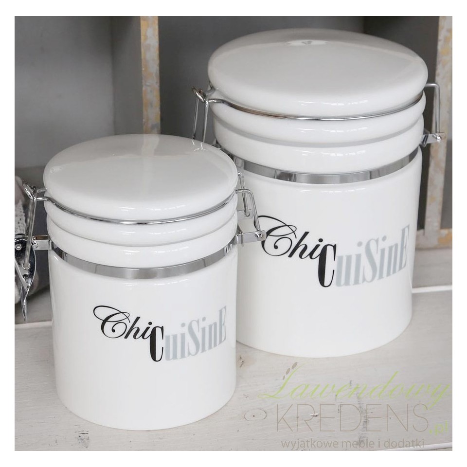 Dodatki do kuchni takie jak porcelana w stylu prowansalskim są praktyczne i stanowią ciekawą ozdobę tego pomieszczenia. Pojemniki kuchenne od Chic Antique są białe i mają oryginalny napis na środku. Pojemniki umożliwią Ci uporządkować przyprawy czy inne dodatki kuchenne, a mocne zamknięcie sprawi że nic się z nich nie wydostanie!