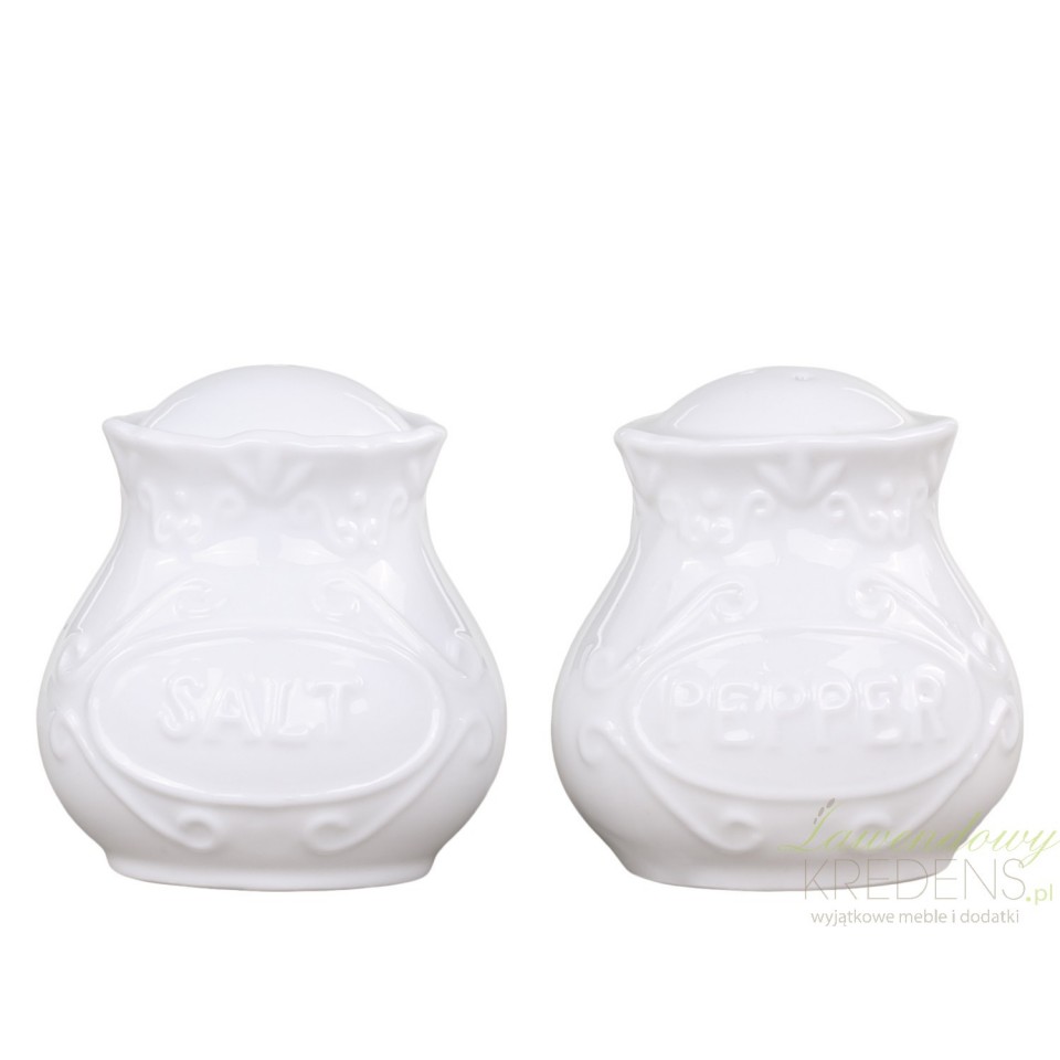 Porcelana w stylu prowansalskim to piękny wygląd i bogate zdobienia. Elegancka i wyrafinowana znajdzie miejsce na każdym stole. Solniczka i pieprzniczka firmy Chic Antique mają cudowne finezyjne rzeźbienia i angielskie napisy Salt i Pepper. Będą wyglądać wyjątkowo z porcelaną z tej samej kolekcji.