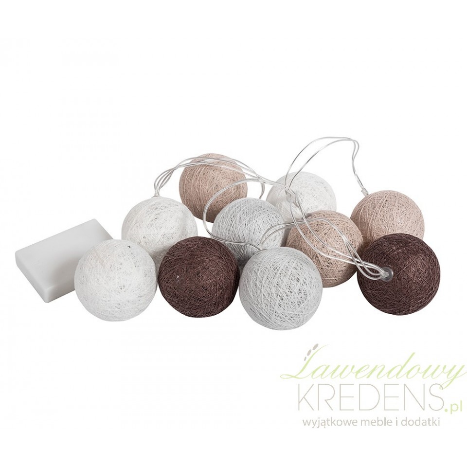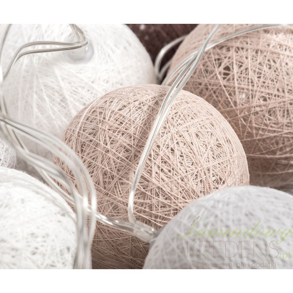 Bawełniane kule z kolekcji Florencja od marki Belldeco to girlanda świetlna, którą możesz wykorzystać na wiele sposobów. Polecamy rozwiesić ją wokół ramy łóżka lub zawiesić na ścianie za pomocą rzep lub gwoździków. Niezależnie od tego gdzie ostatecznie ją wykorzystasz z pewnością zyskasz klimatyczną i przyjemną atmosferę w całym pomieszczeniu. Pamiętaj, że oświetlenie wnętrza to nie tylko lampki i żyrandole ale również kule świecące!