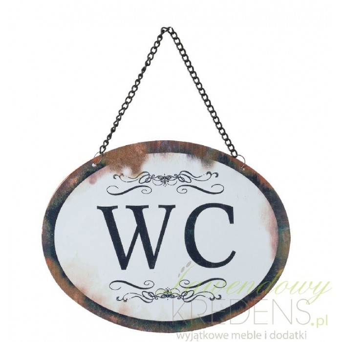 Nie ukrywamy, że zawieszki do drzwi nie należą do niezbędnych elementów wyposażenia wnętrza, ale prawdą jest, że jak żadne inne akcesoria pozwalają w przemyślany sposób zorganizować dom. Zawieszka na drzwi WC pozwoli każdemu gościowi odnaleźć drogę do toalety, a przy okazji udekoruje drzwi. Prezentowana zawieszka metalowa ma owalny kształt, a naniesione na nią ślady rdzy sprawiają, że wygląda na bardzo stary przedmiot. Zawieszki ozdobne od Clayre&Eef zawiesisz na ścianie za pomocą łańcuszka.