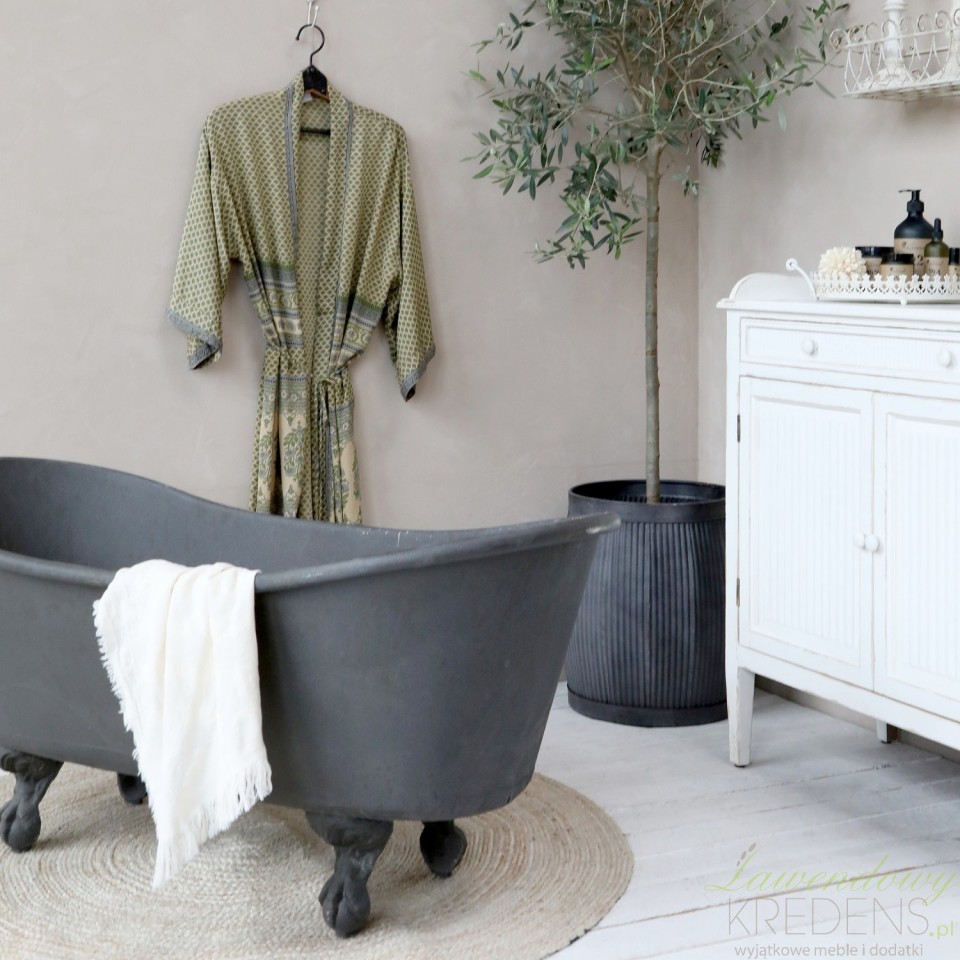 Urokliwa wanna w stylu francuskim to dekoracja w kolorze grafitowym idealna do antycznych aranżacji. Wanna o wysokosci 59cm została ustawiona na solidnych, rzeźbionych nogach. Opływowy kształt i artystyczne wykończenie mówią same za siebie. Idealny produkt do wykorzystania jako sceneria antycznej łaźni.