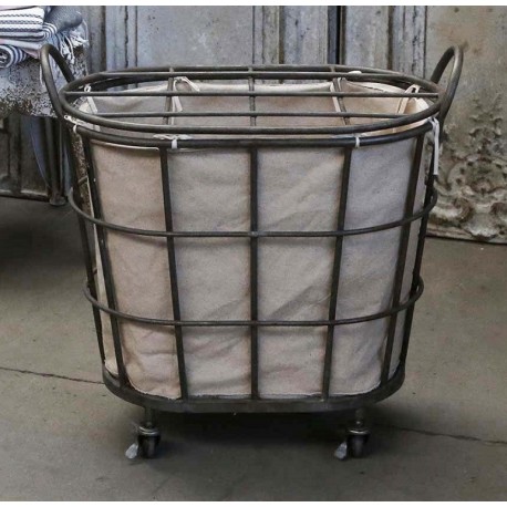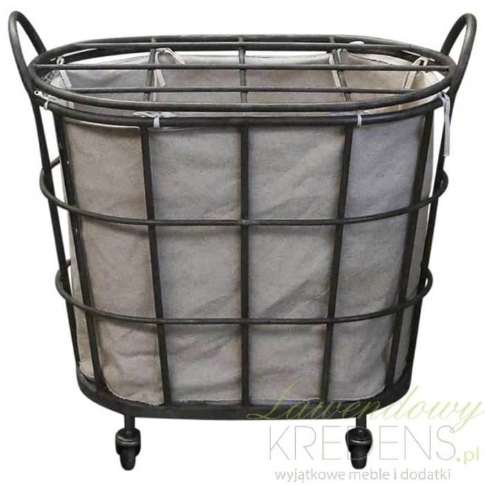 Kosz z metalowej kratki z dwoma uchwytami jest wyłożony w środku jasnym materiałem. Materiał okrywający wnętrze kosza możesz odwiązać od brzegów i uprać w pralce. Kratkowana przykrywa, kółka przy podstawie i ciemny kolor tworzą kosz na pranie, idealny do łazienki lub pralni. Wybieraj kosze na pranie w stylu antycznym i prostym, a jednocześnie o unikatowym wyglądzie.