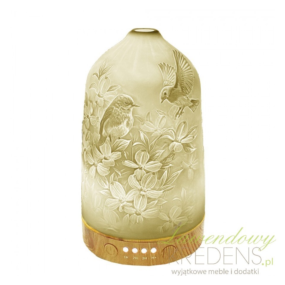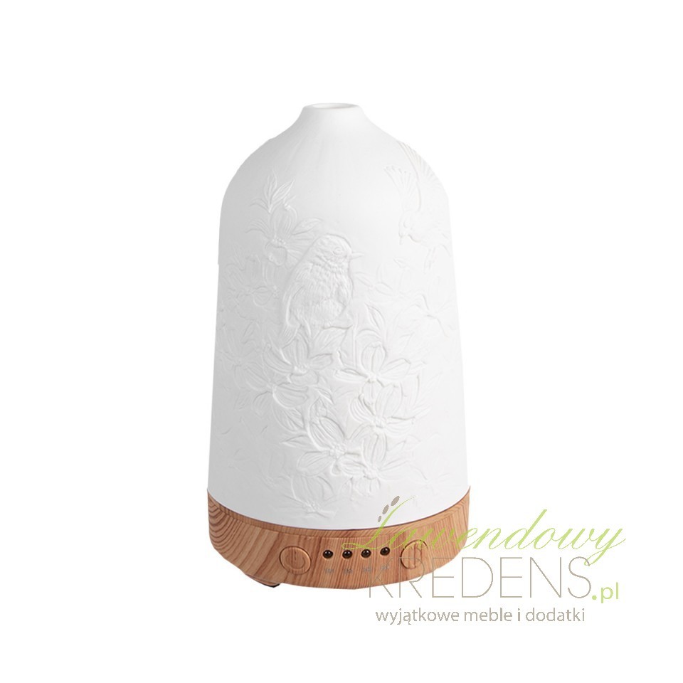 Piękny dyfuzor olejków zapachowych w kolorze białym, wykonany z porcelany. Podświetlany, z kilkoma trybami częstotliwości, w komplecie z ładowarką. Wpuść piękny zapach do swojego domu!