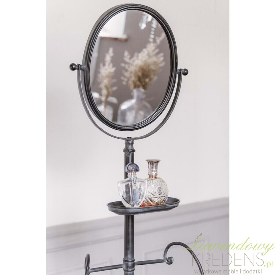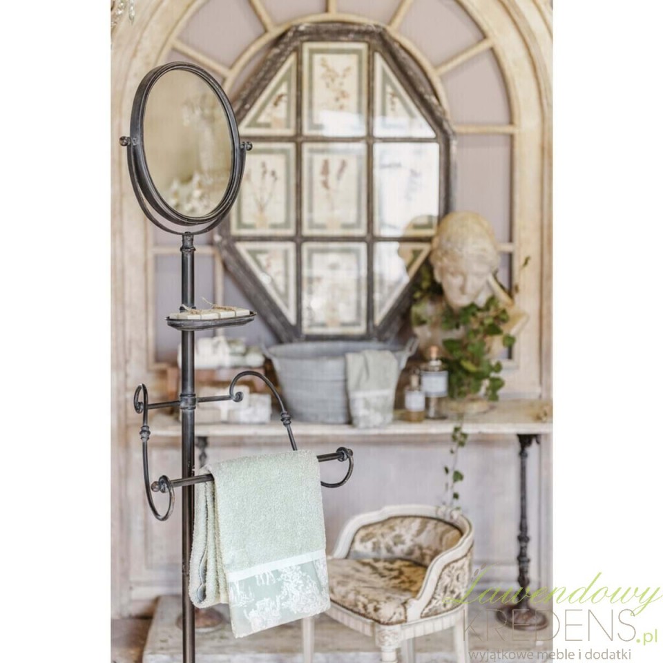 Dzięki zastosowaniu efektu patyny produkt nawiązuje do dawnych epok, zachwycając swoją autentycznością. Najciekawszym elementem wieszaka jest eleganckie, owalne lustro umieszczone na jego szczycie, które nie tylko pełni funkcję użytkową, ale także optycznie rozjaśnia i powiększa przestrzeń.