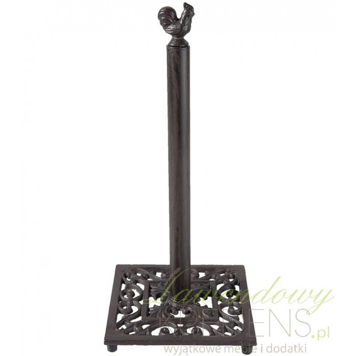 Solidny stojak na ręczniki papierowe wykonany z żeliwa z kogutem na szczycie. Stojak w kolorze brązowym będzie praktycznym wyposażeniem Twojej kuchni!
