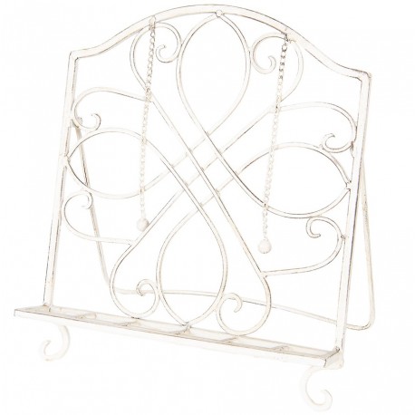 Dodatki do kuchni w stylu prowansalskim to wyjątkowe przedmioty podkreślające jej design. Stojak na książkę to solidna i dekoracyjna konstrukcja metalowa z miejscowymi przecierkami. Dzięki łańcuszkom do trzymania stron z łatwością przygotujesz swoje ulubione danie, a strony nie będą się przewracać. Marka Clayre&Eef zadba o Twoją kuchnię w piękny sposób!