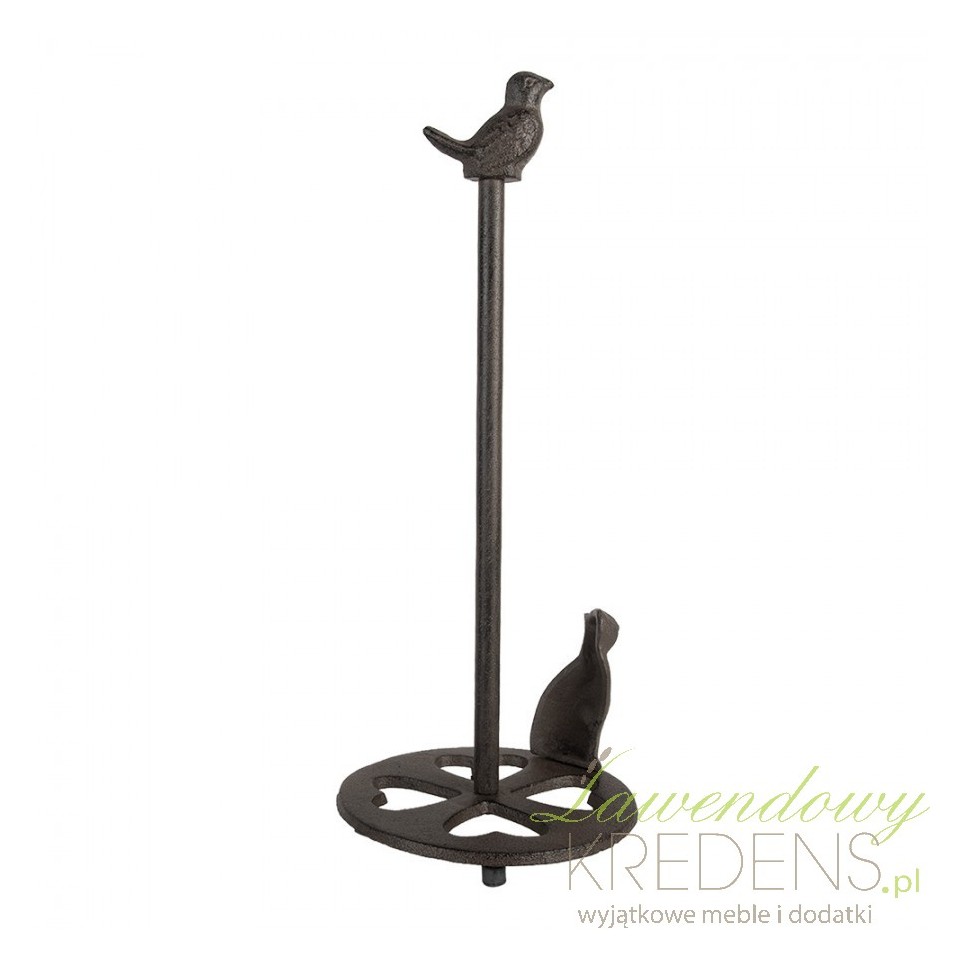 Żeliwny stojak na papier kuchenny Clayre & Eef to wyjątkowy dodatek do kuchni w stylu farmhouse. Solidny, brązowy żeliw, ozdobiony figurką kota i ptaka, łączy praktyczność z dekoracyjnym urokiem. Idealnie wpasuje się w kuchnię rustykalną, prowansalską lub wiejską, tworząc przytulny klimat i podkreślając charakter wnętrza.