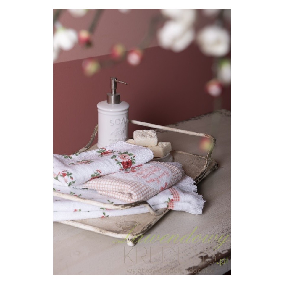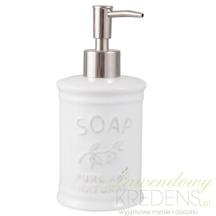 Ceramiczne dozowniki do mydła w jasnych kolorach są uniwersalne i sprawdzają się doskonale w każdej łazience. Zaaranżuj swoja łazienkę wykorzystując dodatki do łazienki w stylu prowansalskim takie jak pojemnik na mydło, a gwarantujemy, że będzie w niej miło i przytulnie. Biały dozownik do mydła ozdobiono lekko poszarzałymi napisami Soap i kwiatuszkiem. Dobierz do kompletu inne akcesoria takie jak wieszak na ręcznik, lusterko oraz szczotkę do WC i zyskaj pewność, ze Twojej łazience niczego nie brakuje.