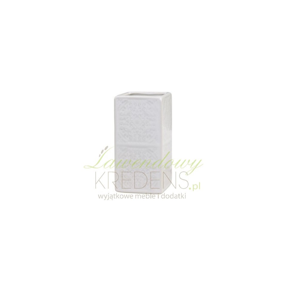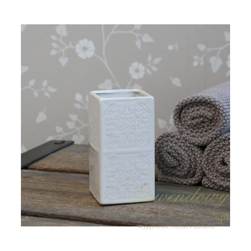 Porcelanowy, elegancki kubek łazienkowy na szczoteczki do zębów i pastę. Jasny, biały kolor i delikatne, urocze zdobienia prezentują się pięknie w każdej łazience. Szkliwione wykończenie i prosty kształt nadają mu lekkości i szyku. Dodatki do łazienki od Chic Antique to najlepszy wybór do współczesnej łazienki i toalety.