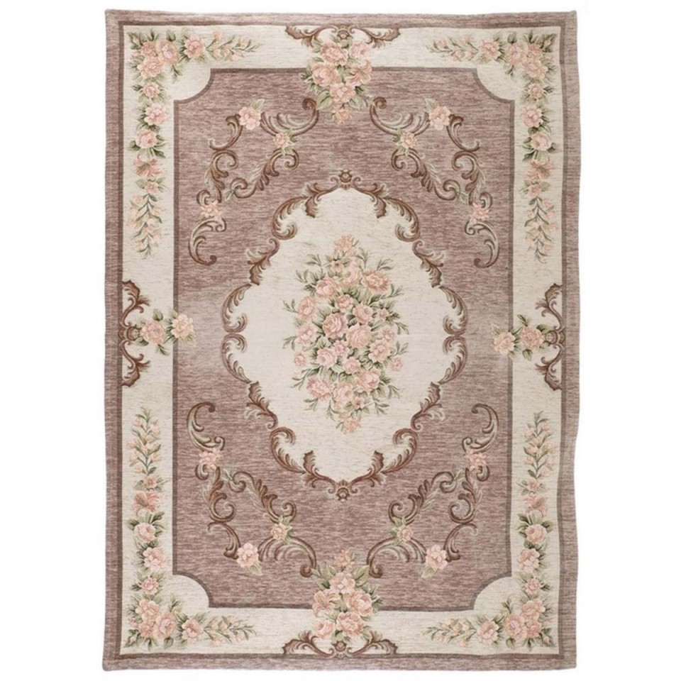 Prostokątny dywan o wymiarach 175 x 240 cm został zaprojektowany z myślą o osobach, które cenią sobie harmonijne, przytulne wnętrza z duszą. Jego delikatny kwiatowy wzór przywodzi na myśl dawne, ręcznie tkane tkaniny i idealnie wpasowuje się w przestrzenie, które mają budzić spokój i domowe ciepło. Dominujące odcienie brązu są przełamane pastelowymi akcentami w odcieniach różu, zieleni i złamanej bieli, co sprawia, że dywan zyskuje głębię i miękkość wizualną.