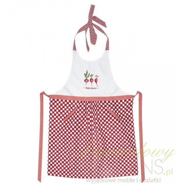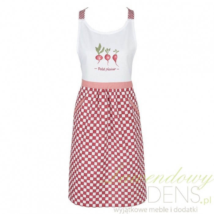 Fartuszek do kuchni wykonany ze 100% bawełny zapewni wygodę noszenia oraz sprawi, że poczujesz się wyjątkowo. Fartuszek kuchenny jest zawiązywany na szyi oraz w talii. Ten piękny fartuch urzeka swoim designem. Posiada grafikę w postaci pięknych rzodkiewek oraz biało-czerwoną kratę. Taki dodatek bardzo przydaję się w kuchni, dzięki niemu Twoje ubranie pozostanie bez zabrudzeń!