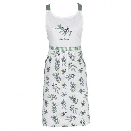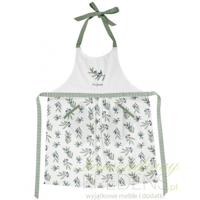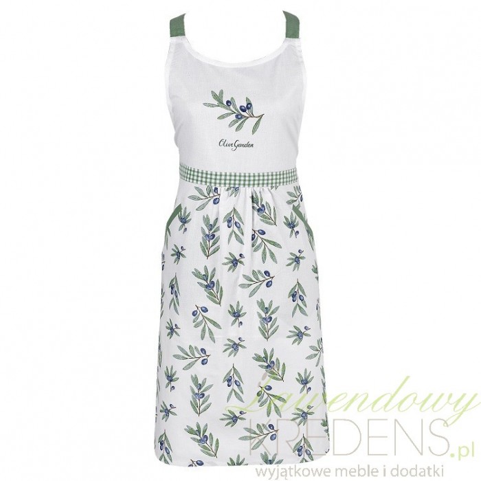 Fartuszek kuchenny z oliwkami z wiązaniem w pasie i na szyi jest utożsamiany z klimatem słonecznej Prowansji. Fartuch z oliwkami to wykonany z bawełny dodatek do kuchni stworzony z myślą o miłośnikach wyszukanych kreacji. Pod kraciastym pasem znajdują się dwie pomocnicze kieszonki po bokach, a w gornej części pod szyją znajduje się charakterystyczna grafika przedstawiająca gałązkę z oliwkami na białym tle. Fartuszek prowansalski z pewnością zachwyci wszystkie kucharki, a dzięki regulowanym wiązaniom będzie pasował na każdą Panią.