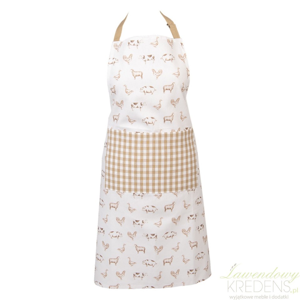 Bawełniany i bardzo uroczy fartuch kuchenny z nadrukiem ze zwierzętami posiada bardzo dużą kieszeń na przodzie. Kieszeń uszyta jest z materiału w kratę, który kontrastuje z pozostałymi elementami fartuszka. Uniwersalny wzór sprawia, że fartuch kuchenny w stylu prowansalskim będzie pasował zarówno kobietom jak i mężczyznom. Odmień swoją kuchnię decydując się na stylowe akcesoria od Clayre&Eef!