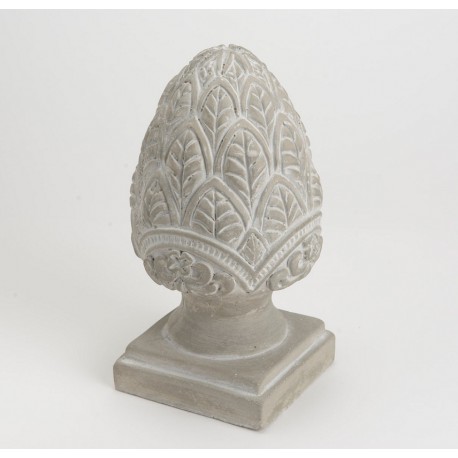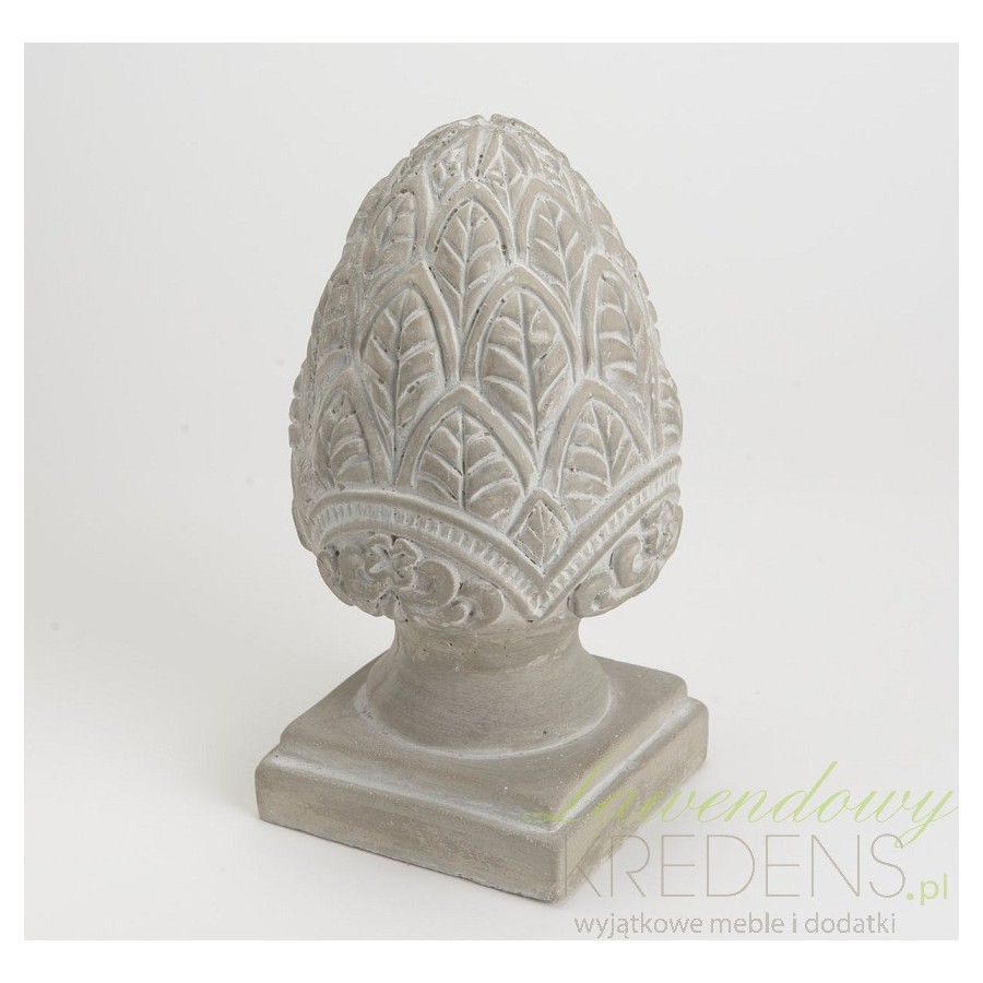 Cementowy karczoch ozdobny z finezyjnie wykończoną, bieloną i przecieraną powierzchnią, któa odznacza się na tle zieleni. Zachwycające, uchwycone w rzeźbie szczegóły budowy powierzchni karchocha sprawiają, że to rewelacyjne dodatki w stylu prowansalskim nie tylko do ogrodu! Statuetki jak prawdziwe karczochy!