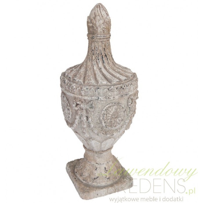 Dekoracje w stylu francuskim to wyjątkowe i unikalne produkty. Dekor w stylu francuskim odmieni wnętrze twojego domu czy ogrodu. Stoi na kwadratowej podstawie i ma niepowtarzalne rzeźbienia. Wykonany z trwałych i solidnych materiałów.