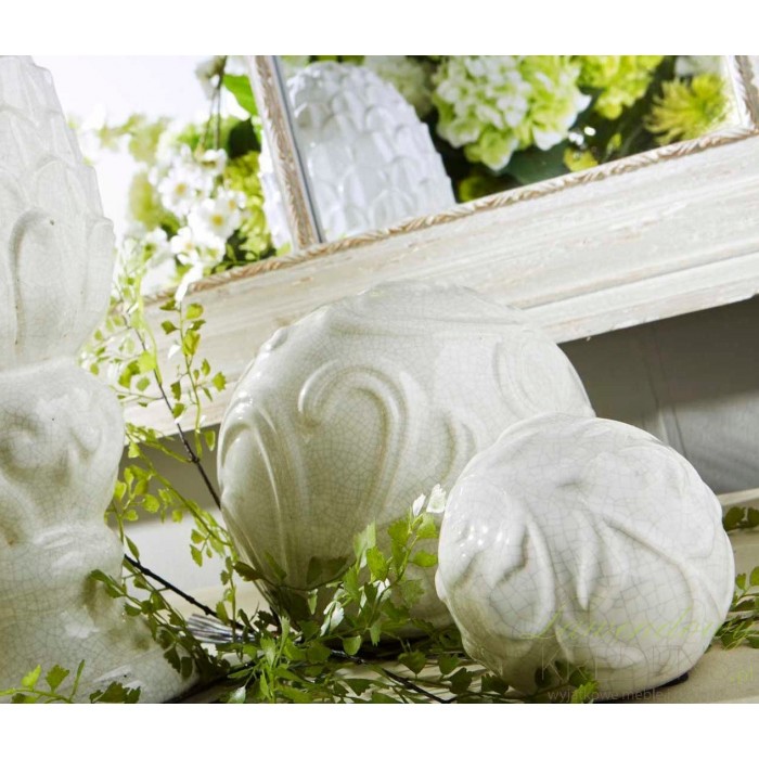 Prowansalskie dekoracje, a wśród nich kule dekoracyjne staną się cudowną ozdobą twojego domu. Kula ozdobna wykonana jest z ceramiki i ma biały kolor. Ma wyjątkowy i oryginalny wzór i może stać się cudownym prezentem, który posłuży na długie lata.