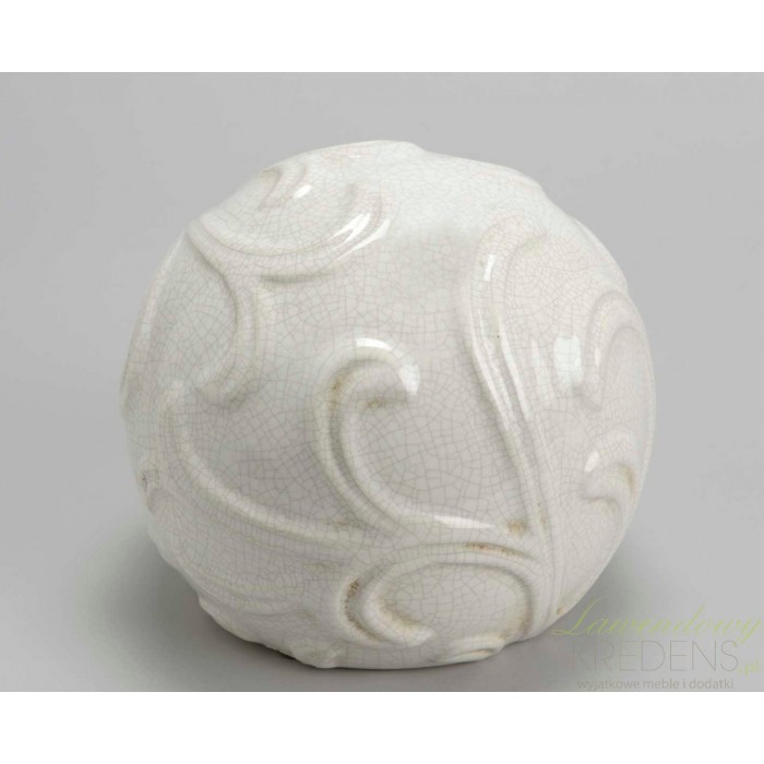 Prowansalskie dekoracje, a wśród nich kule dekoracyjne to wyjatkowa i niezwykle oryginalna ozdoba mieszkania. Kula ozdobna wykonana jest z ceramiki i ma biały kolor. Posiada unikalny wzór, który dodaje jej uroku i gracji.