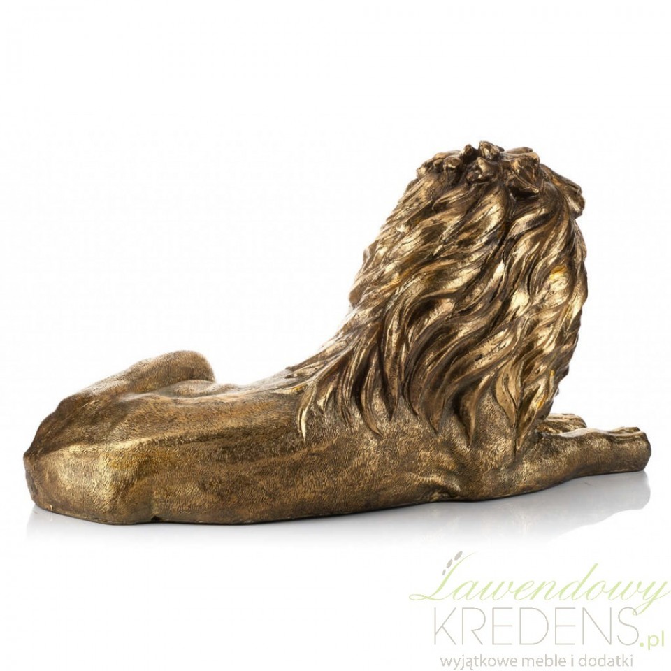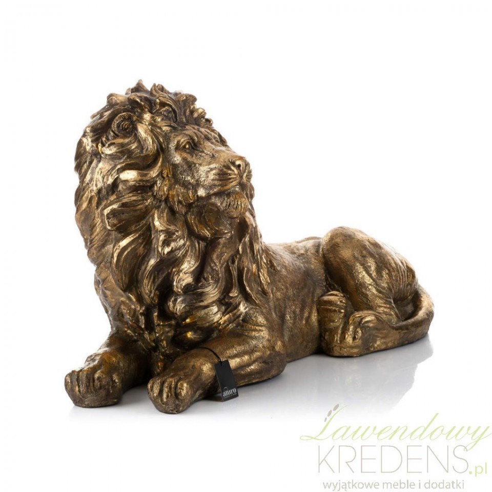 Duża figura lwa złota Aluro to posąg odpoczywającego lwa, który został pięknie wykonany z cechami, które sprawiają, że jest wspaniałym dodatkiem do Twojego domu.