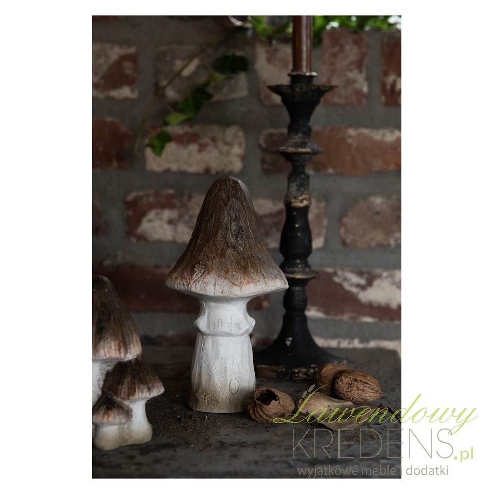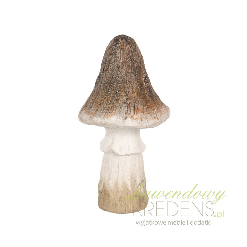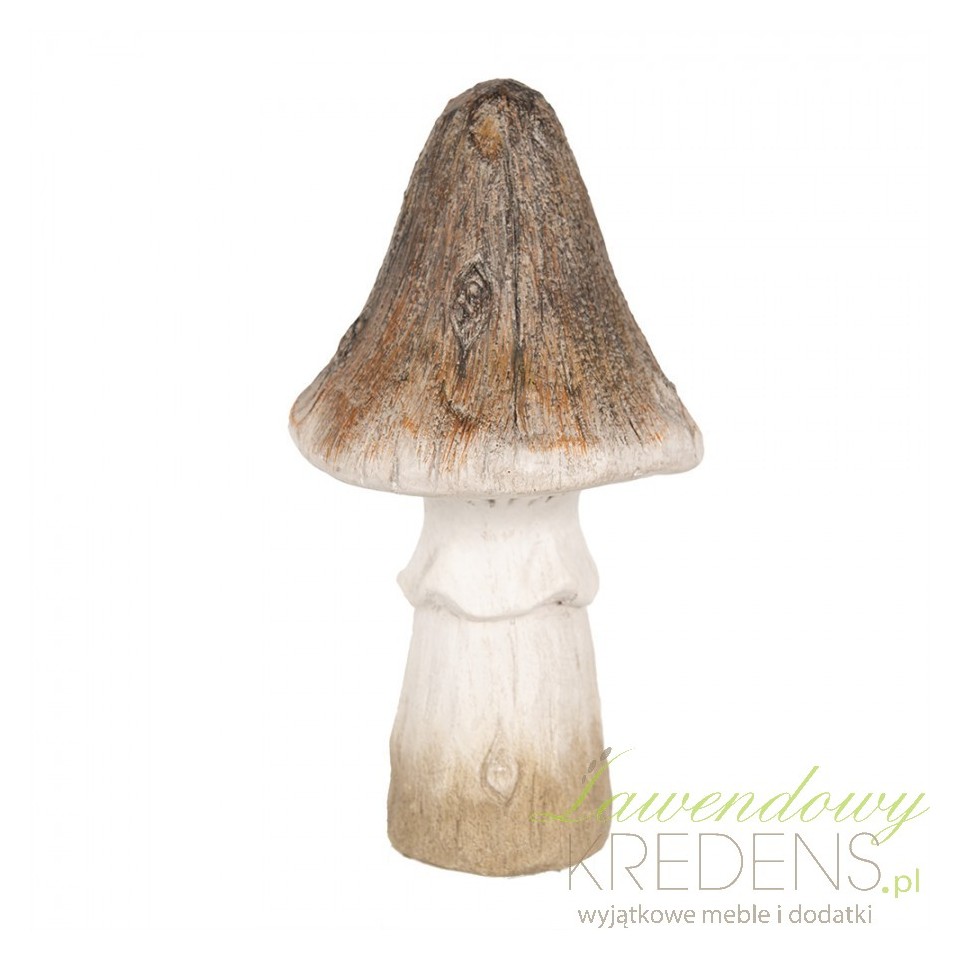 Piękny grzyb dekoracyjny w kolorze biało-brązowym. Idealny element jesiennej dekoracji. Neutralne kolory pasują do każdej stylizacji tworząc piękną, jesienną atmosferę.