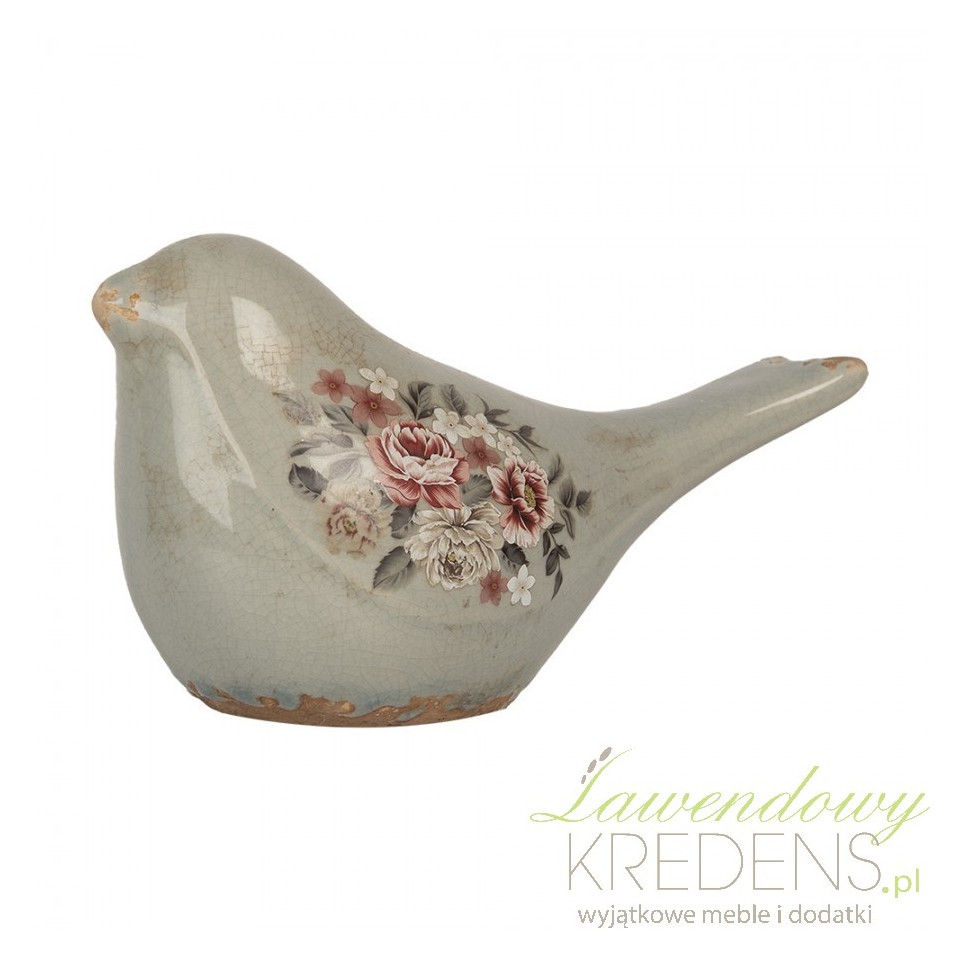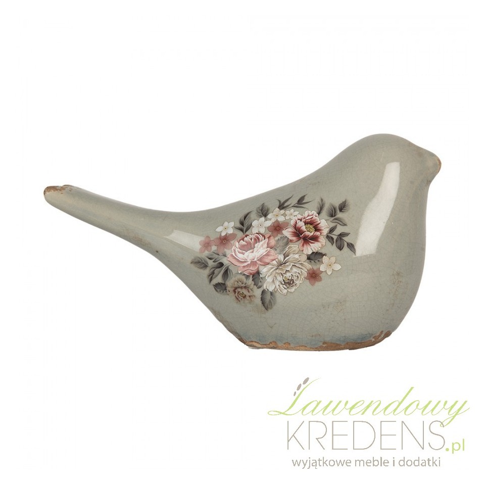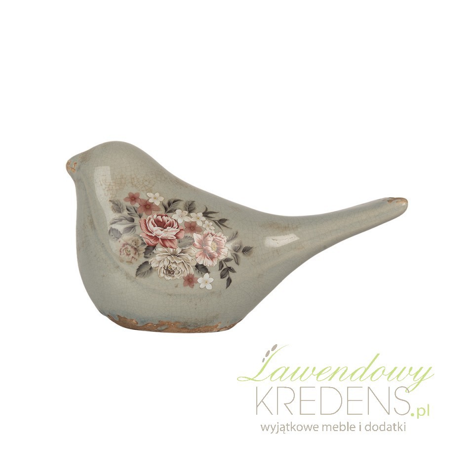 Ceramiczny ptaszek ozdobny Clayre & Eef w szaro-beżowym odcieniu z subtelnym motywem kwiatowym to dekoracja, która doda wnętrzu delikatności i stylu. Idealnie sprawdzi się w aranżacjach prowansalskich i rustykalnych, wprowadzając ciepło i naturalny urok do salonu, sypialni czy jadalni.
