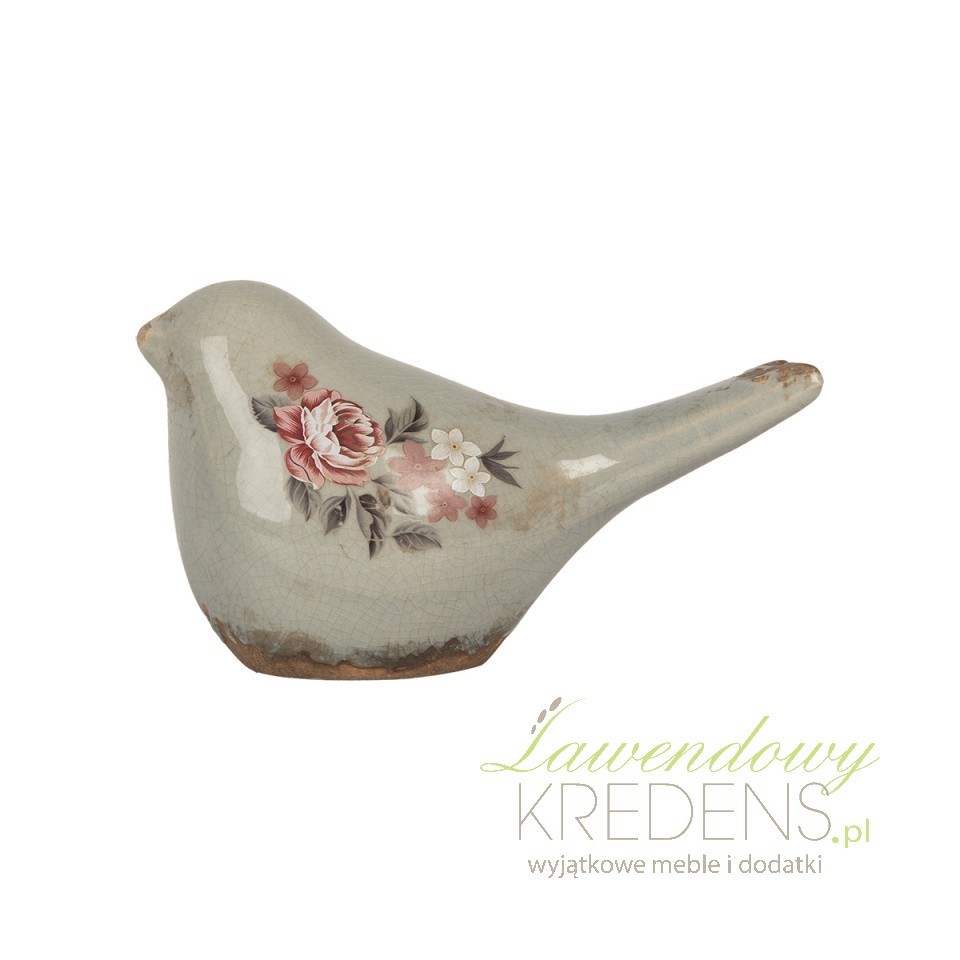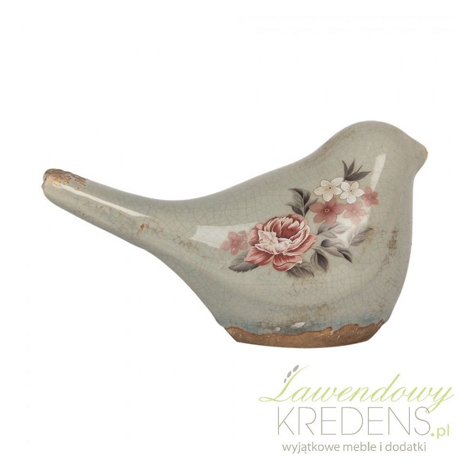 Ceramiczny ptaszek ozdobny Clayre & Eef to stylowa dekoracja w klimacie vintage, która zachwyca subtelnym motywem kwiatów i postarzaną powierzchnią. Dzięki ręcznemu wykończeniu każdy egzemplarz jest niepowtarzalny i doskonale uzupełni aranżacje w stylu prowansalskim, rustykalnym czy shabby chic, wnosząc do wnętrza romantyczny i przytulny charakter.