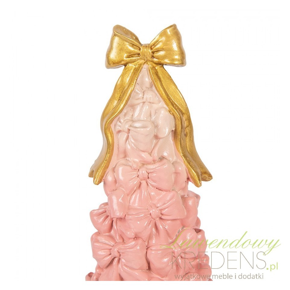 Zestawienie pudrowego różu z złotymi akcentami buduje klimat glamour, ale ta forma świetnie pracuje też w bardziej miękkich stylach: romantycznym, paryskim, a nawet nowoczesnym (jako kontrapunkt dla prostych brył). Ustaw figurkę na tacy lustrzanej lub marmurowej – wzmocnisz odbicia i uzyskasz efekt butikowej ekspozycji. W klasycznych wnętrzach połącz ją z bielą, ecru i welurem; w nowoczesnych dodaj czerń i szkło, żeby podbić kontrast.Dekoracja na komodę, kominek i świąteczny stół – stabilna forma i „warstwowa” tekstura