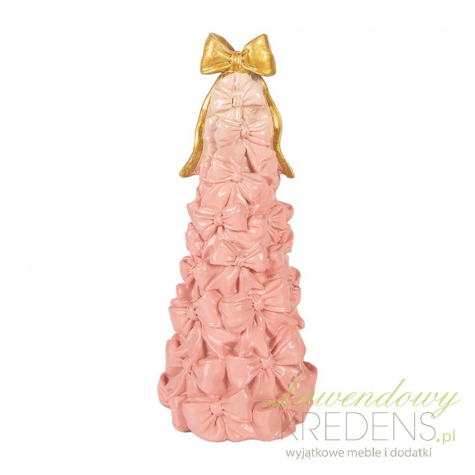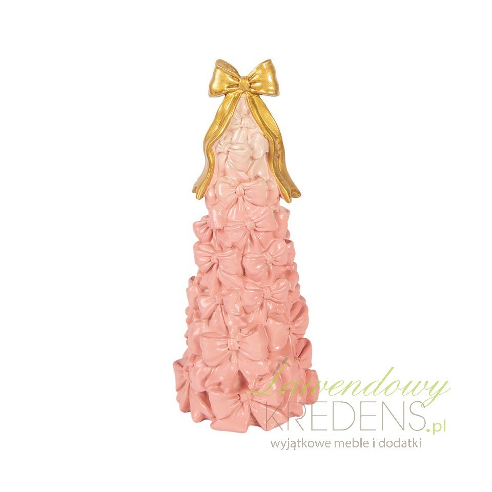 Smukły kształt sprawia, że figurka nie zabiera dużo miejsca na blacie, a jednocześnie daje wysokość potrzebną do budowania kompozycji (np. z wazonem i świecami). Warstwowa tekstura kokard działa jak rzemieślniczy relief: z bliska widać detale, z daleka dekoracja wygląda spójnie i elegancko. Polecam ją jako centralny punkt na komodzie, obok ramki lub szkatułki; w okresie zimowym pięknie zastępuje klasyczną figurkę choinki, jeśli wolisz subtelne, pastelowe dekoracje.Jak dbać o figurkę Clayre & Eef, by zachowała połysk i kolor