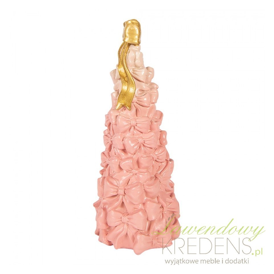 Jeśli urządzasz salon, sypialnię albo konsolę w przedpokoju i brakuje Ci jednego, wyrazistego detalu, który „domknie” aranżację bez wymiany mebli, ta figurka rozwiązuje problem w kilka minut. Figurka Ozdobna Kokardki Clayre & Eef ma smukłą, stożkową sylwetkę i relief z wielu kokard, dzięki czemu działa jak gotowa dekoracja premium: przyciąga wzrok, ale nie przytłacza. Połyskliwa powierzchnia podkreśla światło z lamp i świec, więc polecam ją szczególnie do miejsc, gdzie zależy Ci na efekcie „wow” bez nadmiaru dodatków.Różowa figurka z kokardami w stylu glamour i romantycznym – jak ją wpasować w aranżację