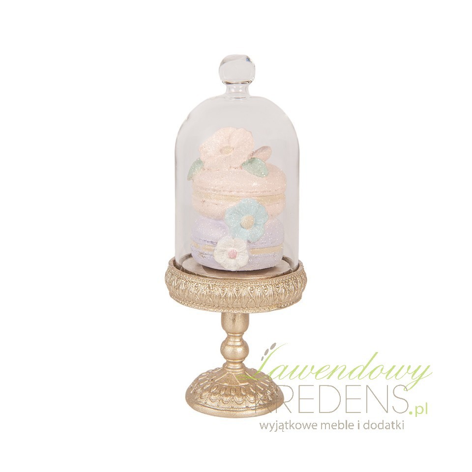 Jeśli urządzasz wnętrze i brakuje Ci „kropki nad i”, która od razu porządkuje aranżację, wybierz dekorację pod szklanym kloszem Clayre & Eef. Klosz działa jak mini gablotka: izoluje kompozycję od kurzu, przypadkowych otarć i wilgoci z kuchni czy jadalni. Dzięki temu nie musisz codziennie przecierać drobnych ozdób ani martwić się, że detale stracą wyrazistość. Pastelowa kompozycja z motywem słodkości i kwiatów ociepla przestrzeń, a jednocześnie wygląda „kolekcjonersko” – jak eksponat z domowej witryny.Szklany klosz dekoracyjny na stabilnej podstawie – bezpieczna ekspozycja drobiazgów
