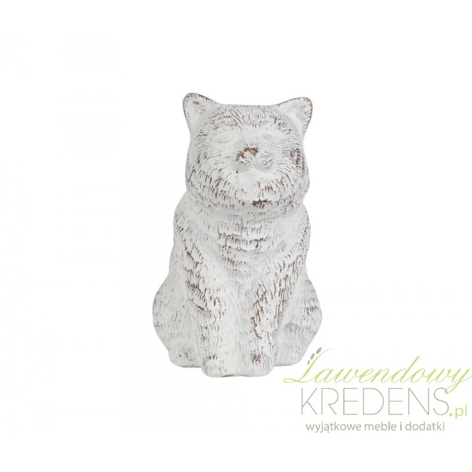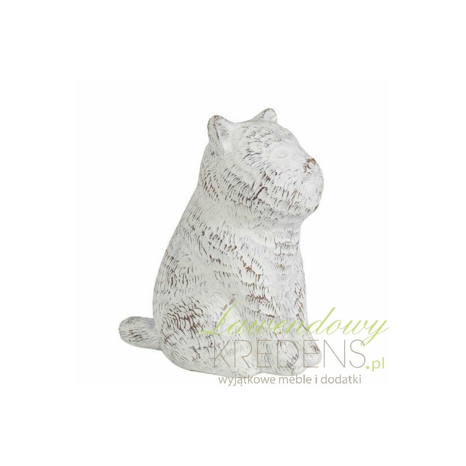 Biała figurka kota z żywicy polimerowej do dekoracji wnętrz w stylu rustykalnym i vintage
