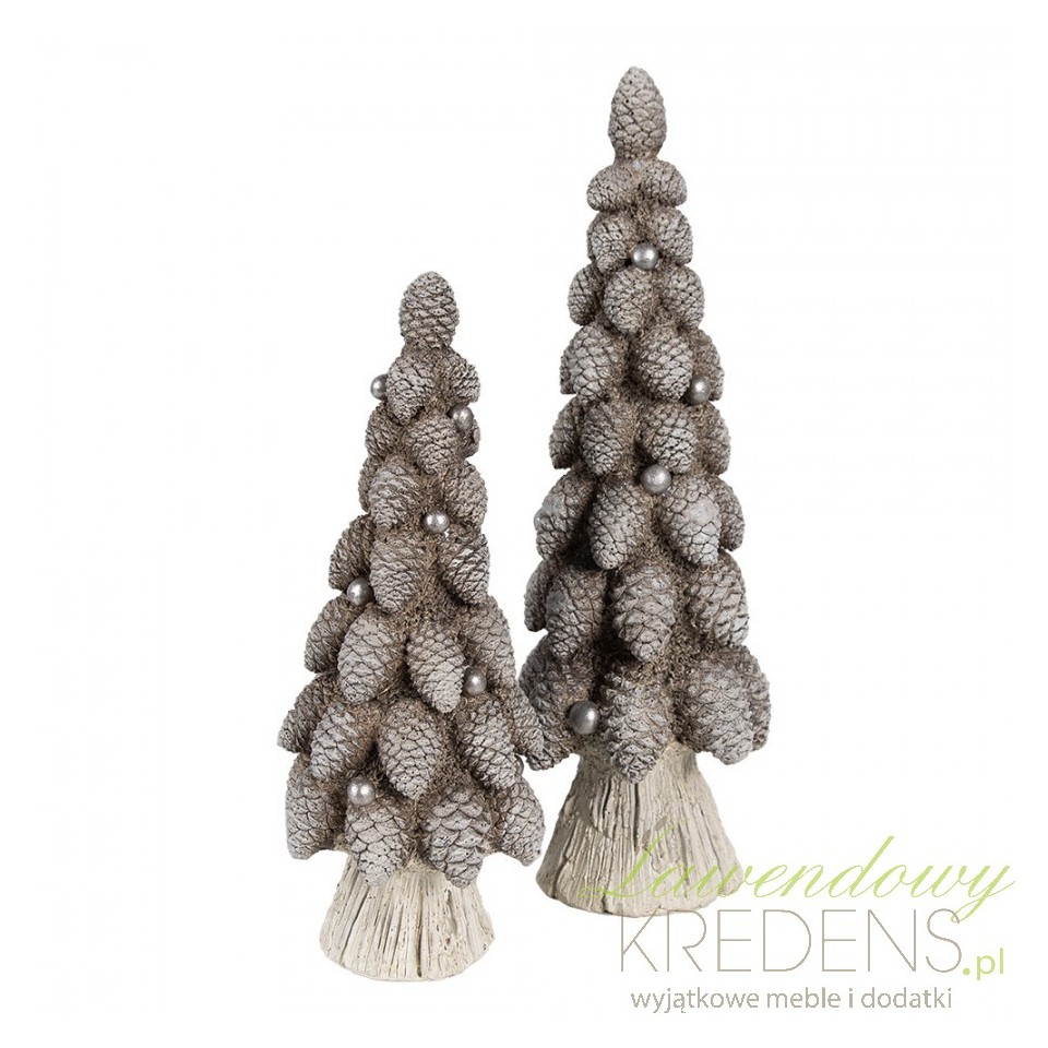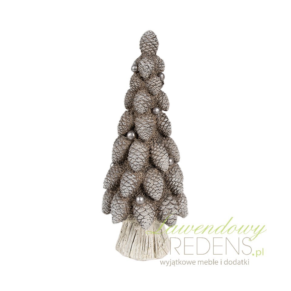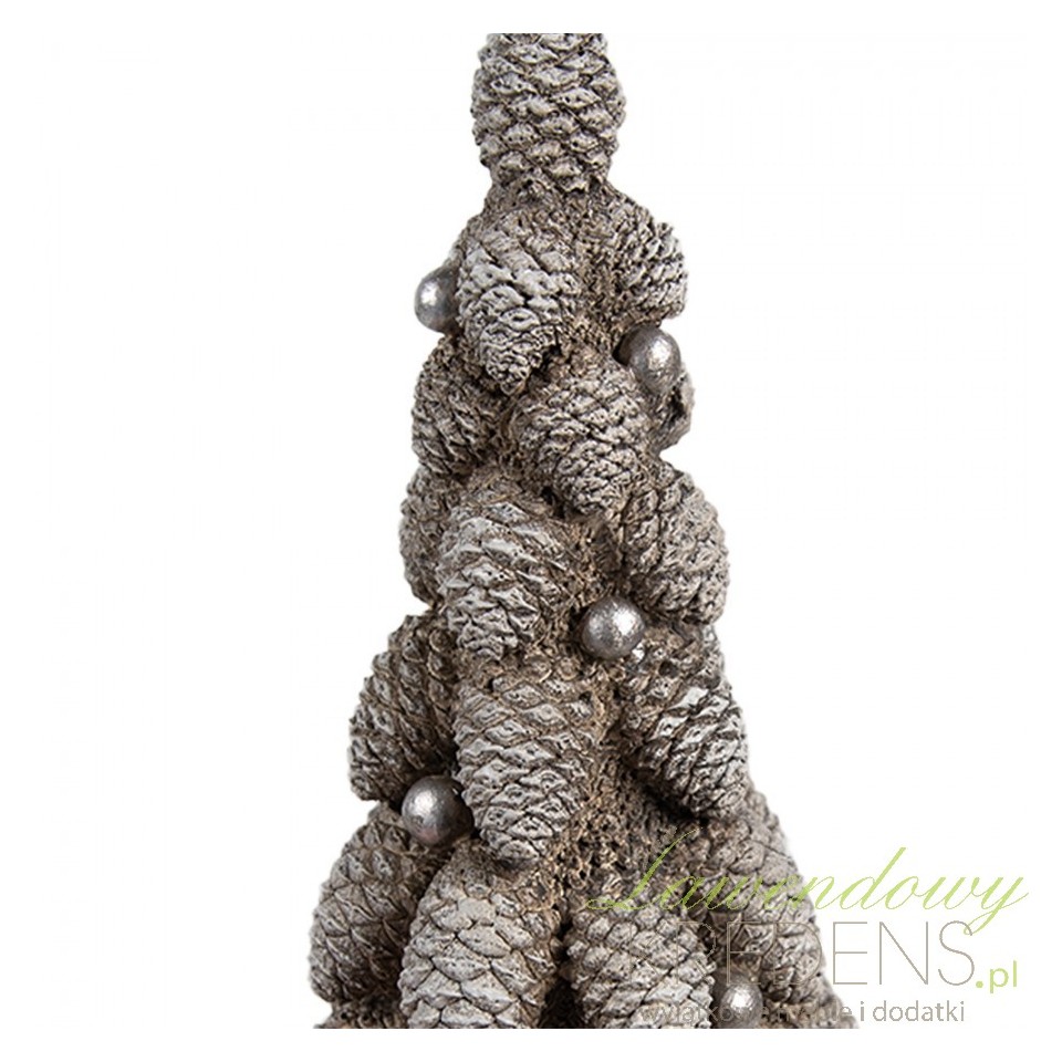 Ozdobna choinka wykonana z szyszek w szarym kolorze i małych srebrnych kuleczek to elegancka i subtelna dekoracja . Zimowe tradycyjne dodatki, idealnie wpasują się między innymi do aranżacji nowoczesnych, ale nie tylko. Odmień swoje świąteczne wnętrze już dziś.