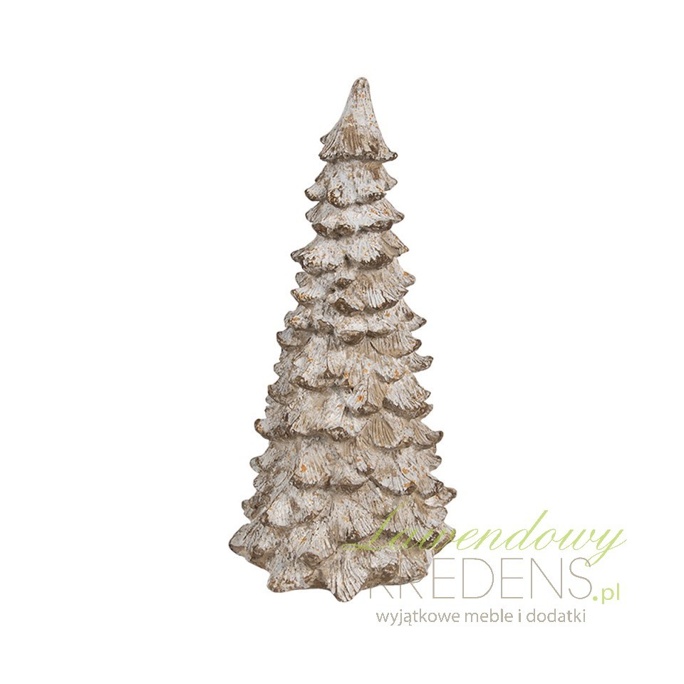 Beżowa choinka wyglądająca jakby była oprószona lekko śniegiem. Delikatne i subtelne dodatki, które podkreślą zimową aurę, jednocześnie ocieplając pomieszczenie w którym się znajdą.