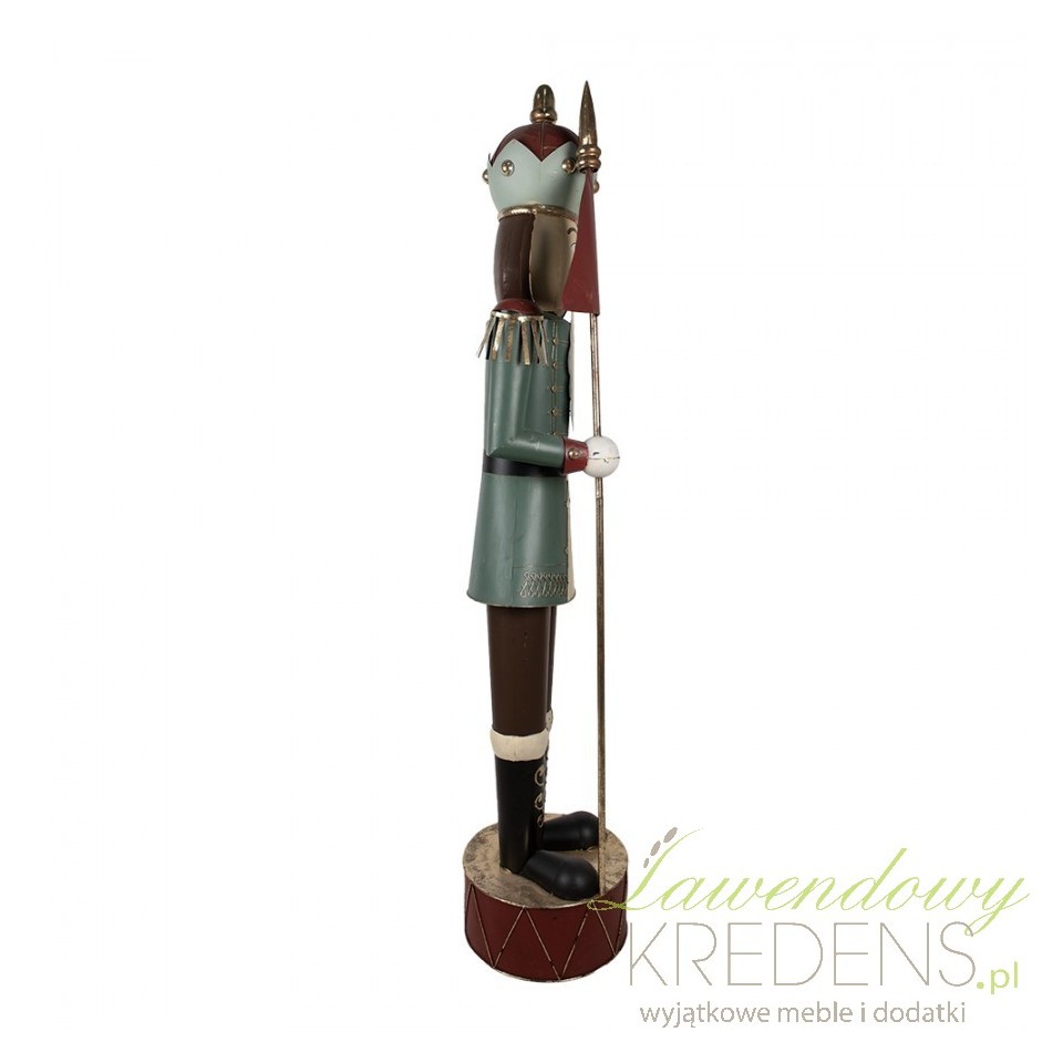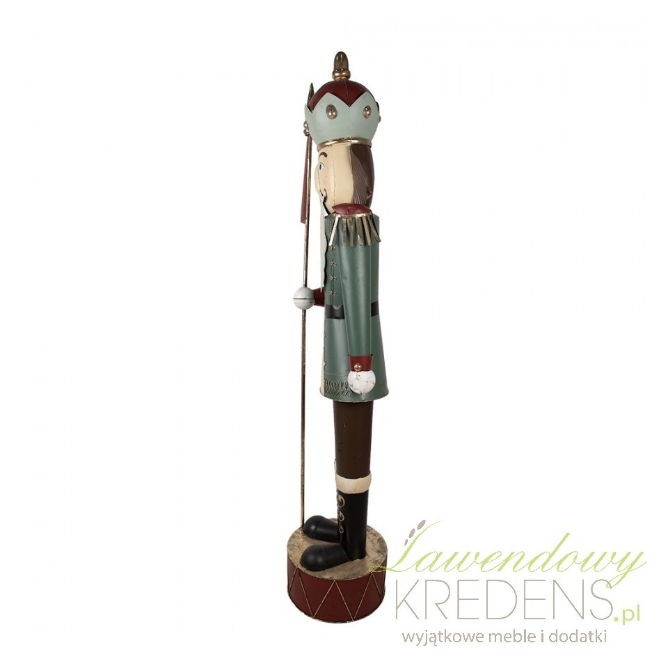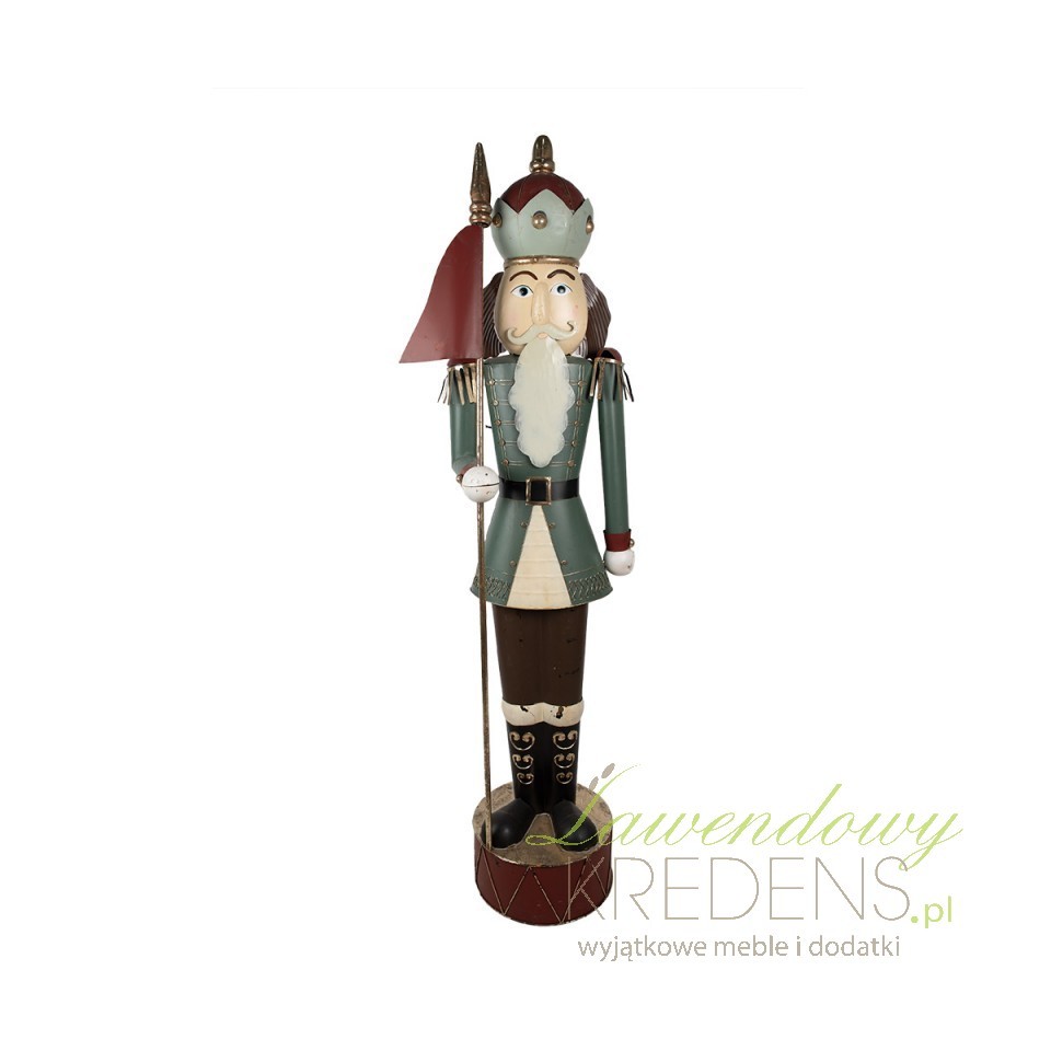 Duży, metalowy dziadek do orzechów będący piękną świąteczną ozdobą witryn sklepowych lub wejść do pomieszczeń, zarówno tych komercyjnych jak i domowych, jest wysoki na aż 203 cm. Wprowadzi świąteczną atmosferę w oryginalny sposób wszędzie tam, gdzie go postawisz.