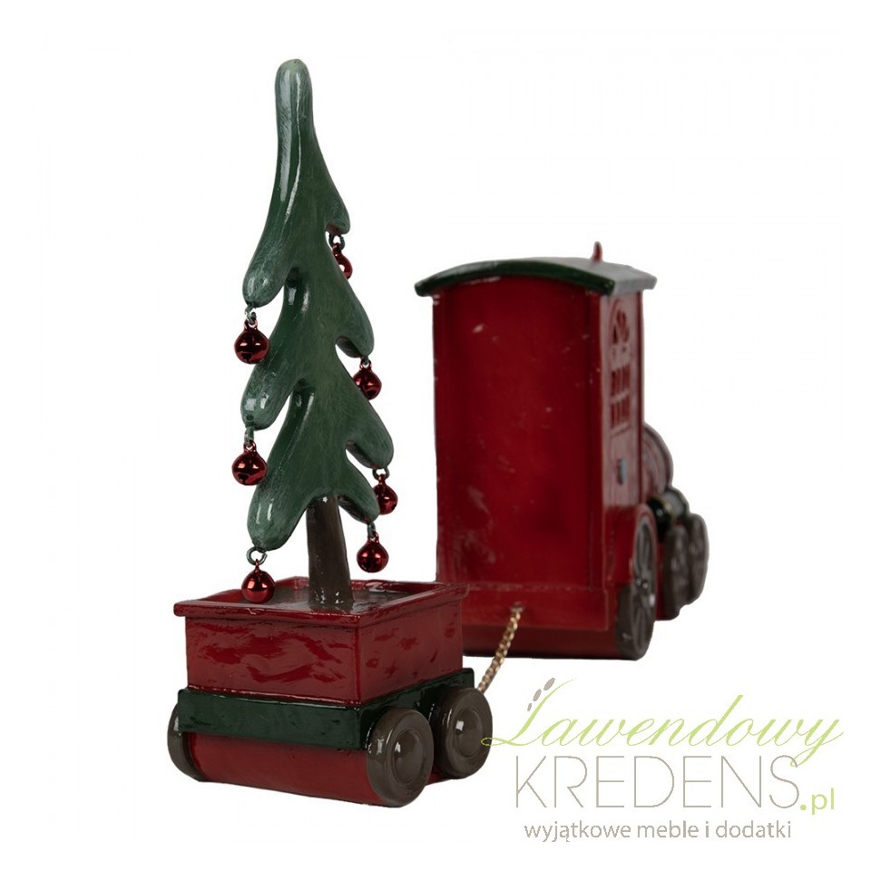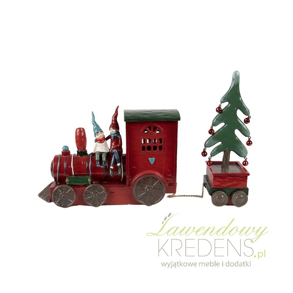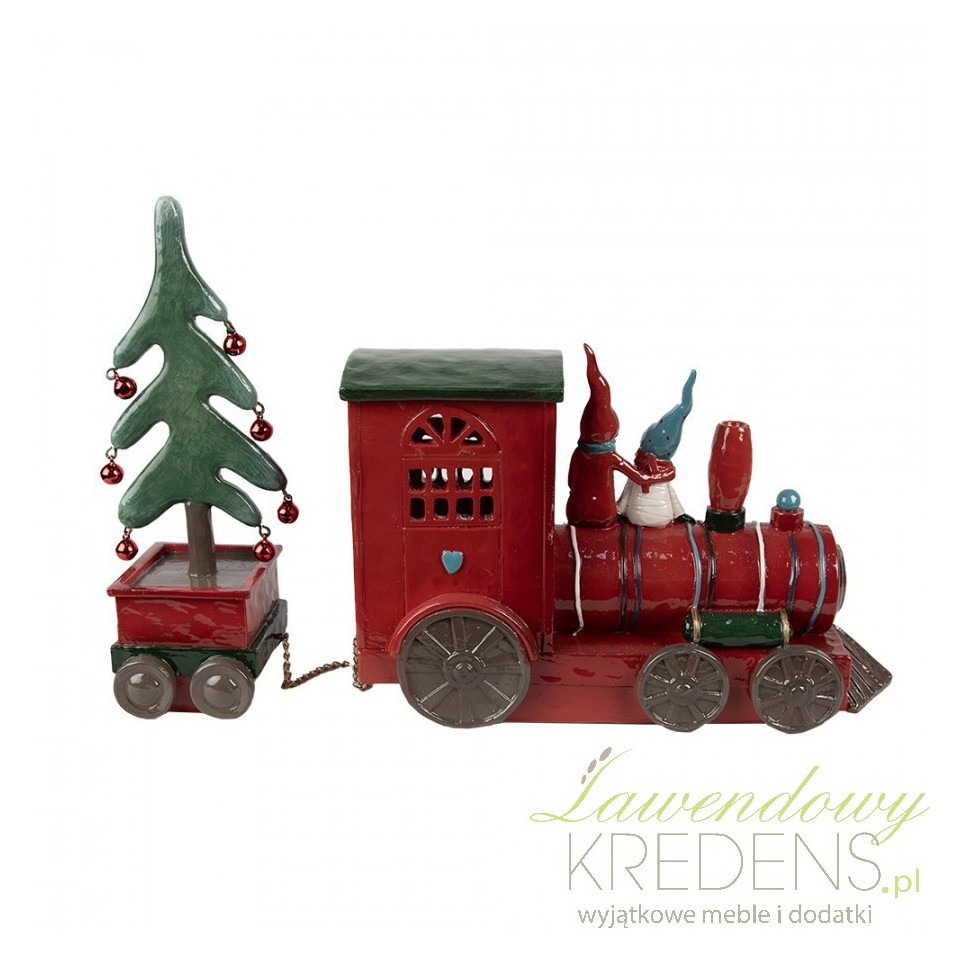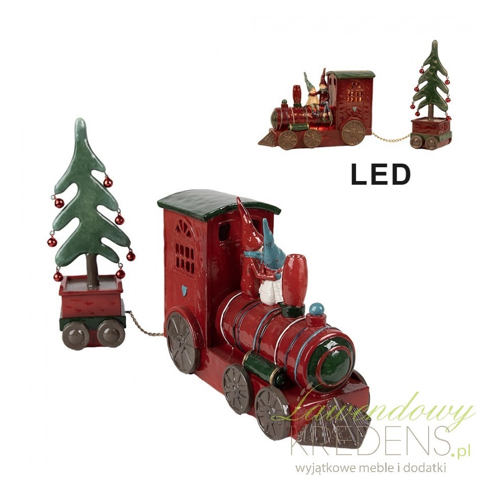 Zabawna dekoracja w postaci czerwonej lokomotywy na której siedzą dwa krasnalki i wiozą zieloną choinkę z czerwonymi bombkami. Do włączenia dekoracji potrzebne są baterie 2xAAA.