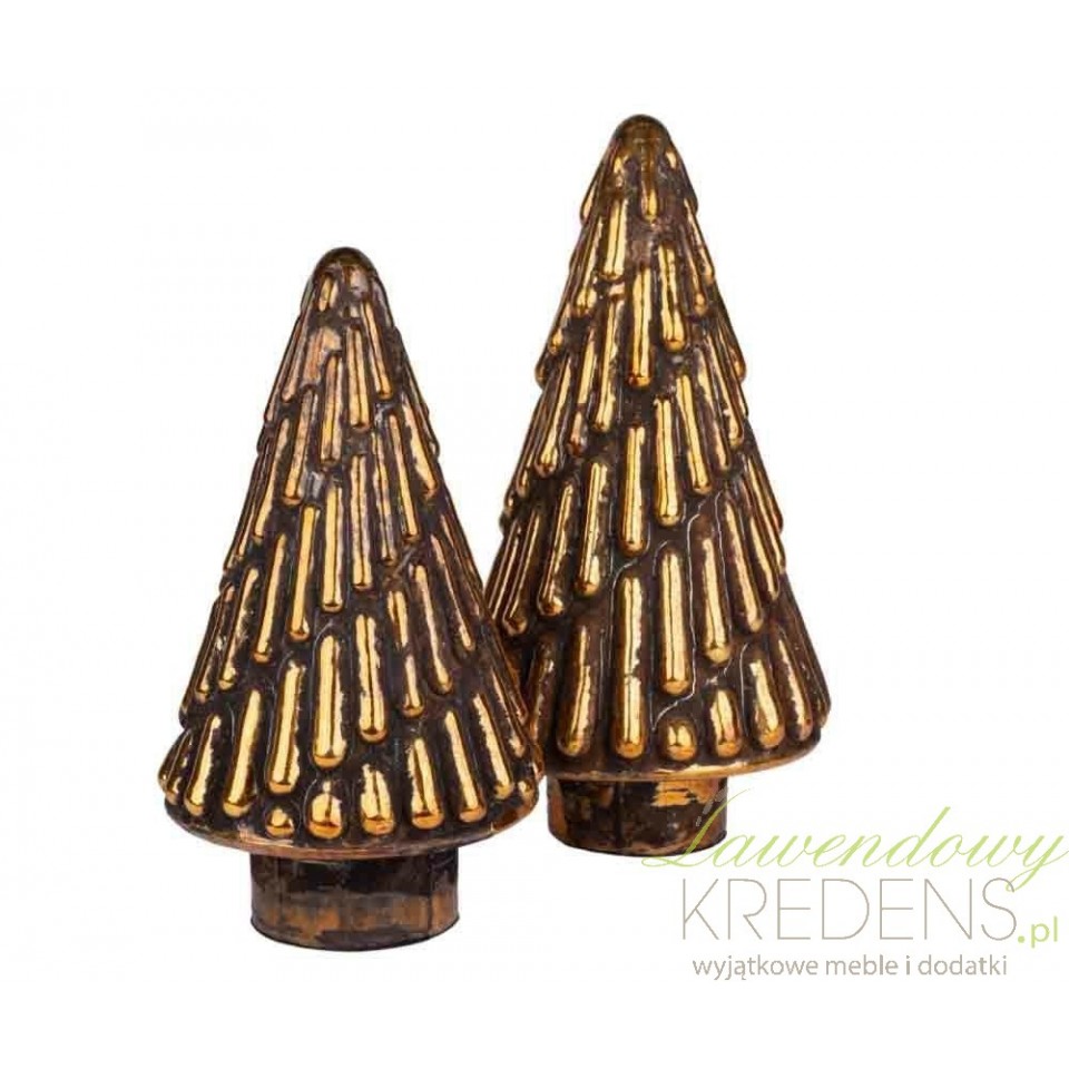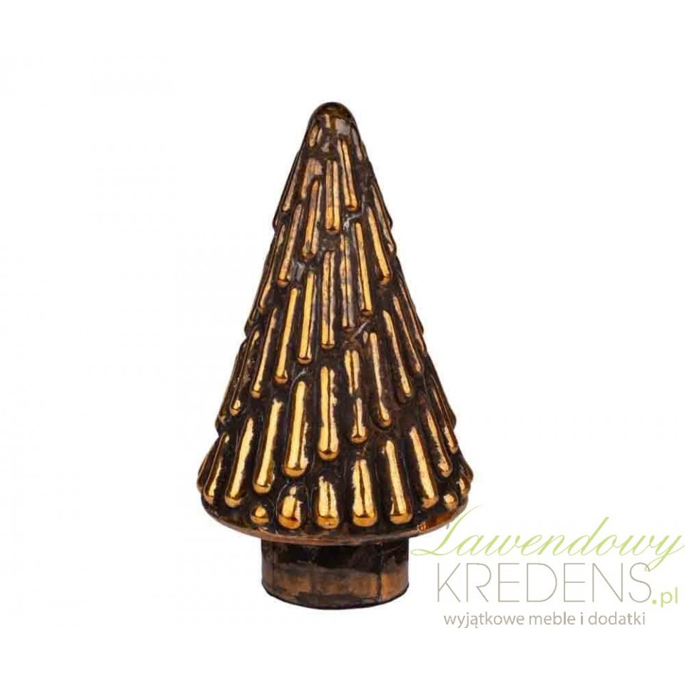 Złota choinka dekoracyjna do świątecznej aranżacji stołu i komody