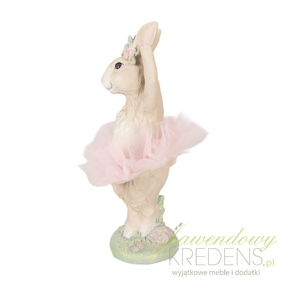 Polecam ją do wnętrz w klimacie shabby chic, romantycznym i cottage. Zwróć uwagę na delikatną, matową powierzchnię i subtelną teksturę futerka – wygląda bardziej jak ręcznie wykończona dekoracja niż masowa ozdoba. Różowa tiulowa spódniczka i wianek tworzą pastelowy, „wiosenny” ton bez krzykliwego blasku.Stabilna figurka na Wielkanoc – bezpieczna w domu z dziećmi i zwierzętami